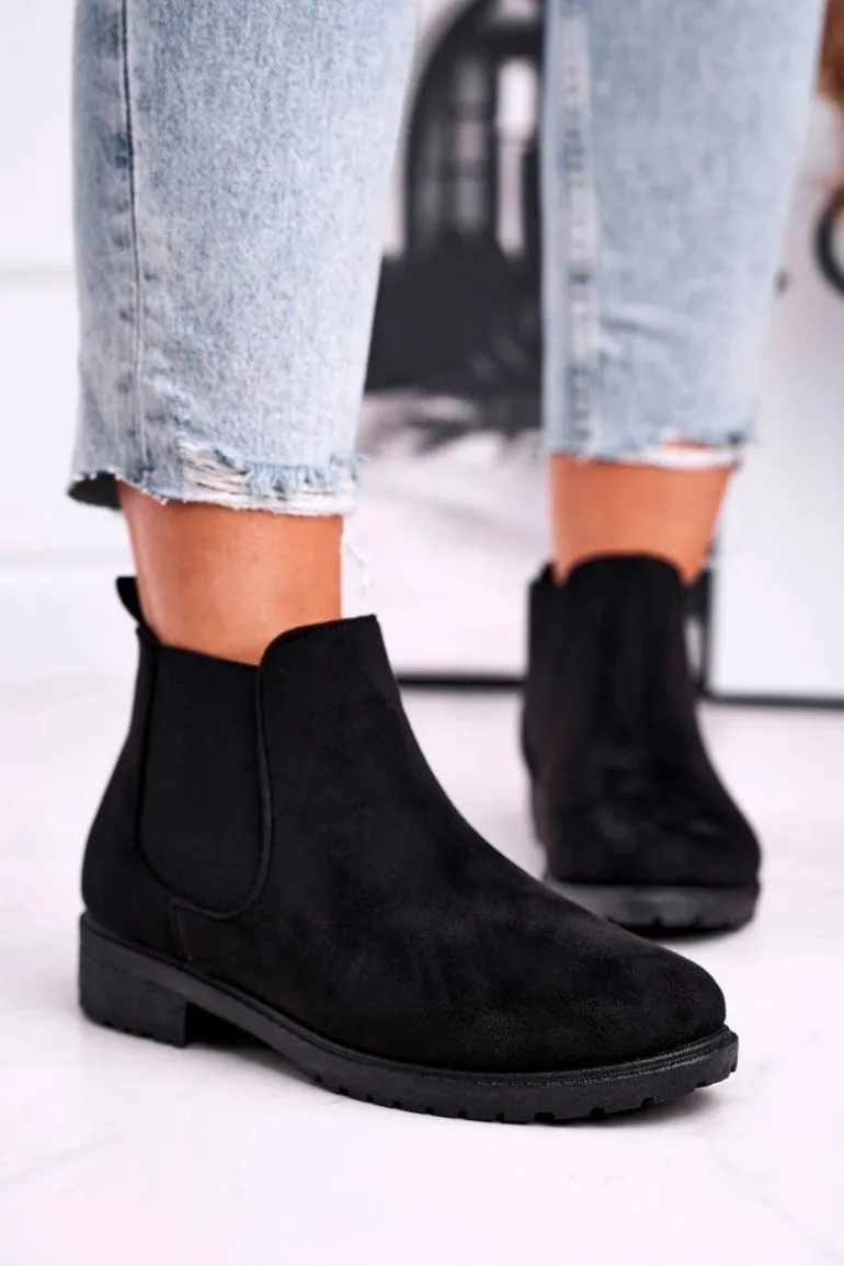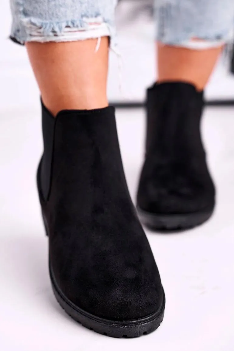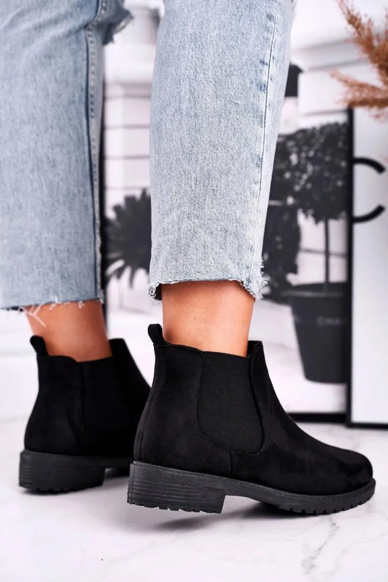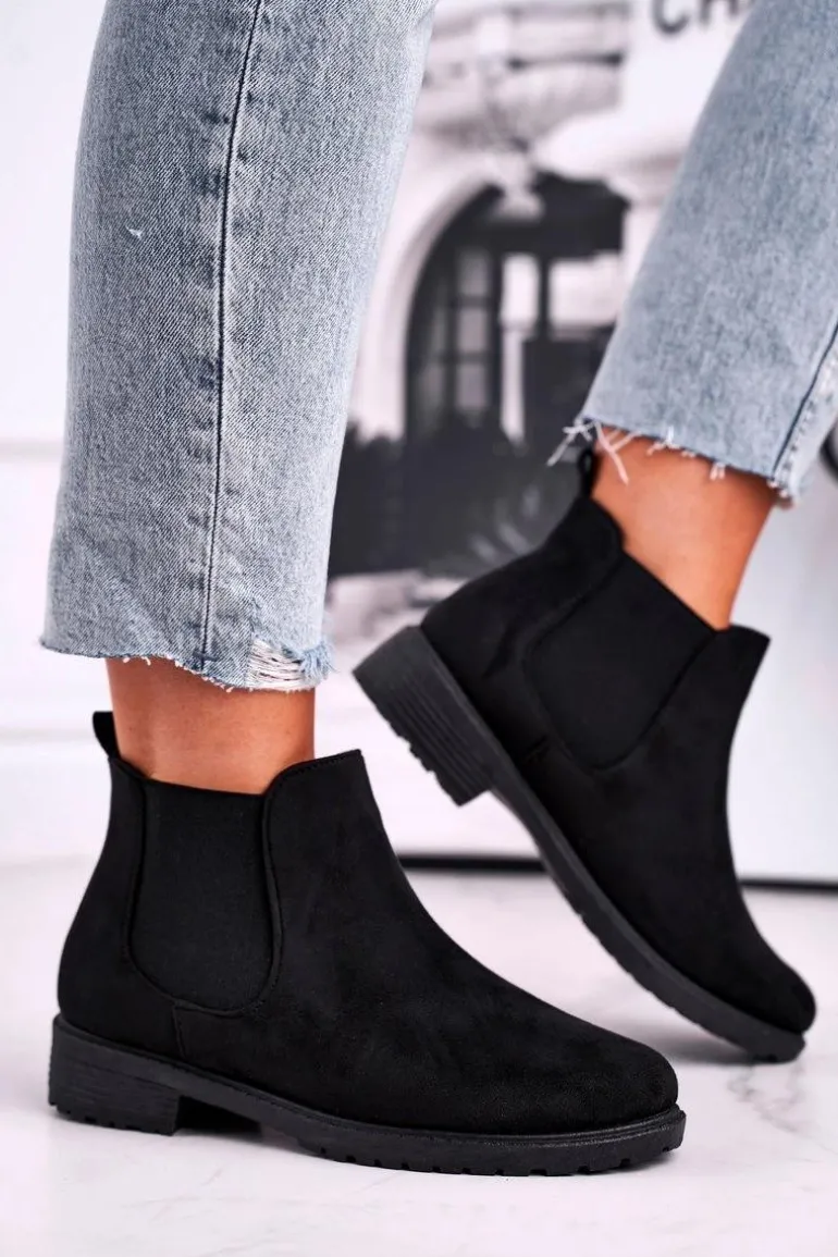 Czarne klasyczne botki o fasonie sztybletów. Model, który pasuje do każdej stylizacji dzięki swej klasycznej stylistyce. Wierzch został wykonany ze skóry ekologicznej imitującej zamsz. Wnętrze pokryte ciepłym kocem obuwniczym. Wsuwana cholewka z gumkami po bokach to strzał w 10! Lekka i wygodna konstrukcja – z pewnością znajdziesz miejsce na kolejną parę butów. Przy wyborze rozmiaru prosimy sugerować się tabelą rozmiarów.
