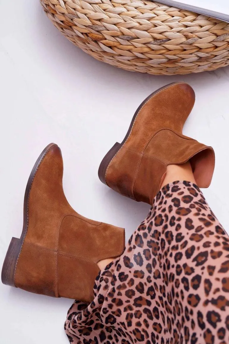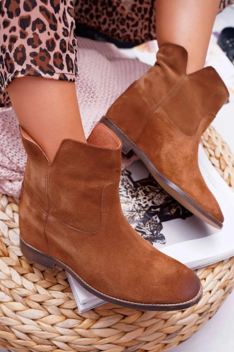 Botki Damskie Ukryty Koturn Płaski Obcas Brązowe Nicole 2419
