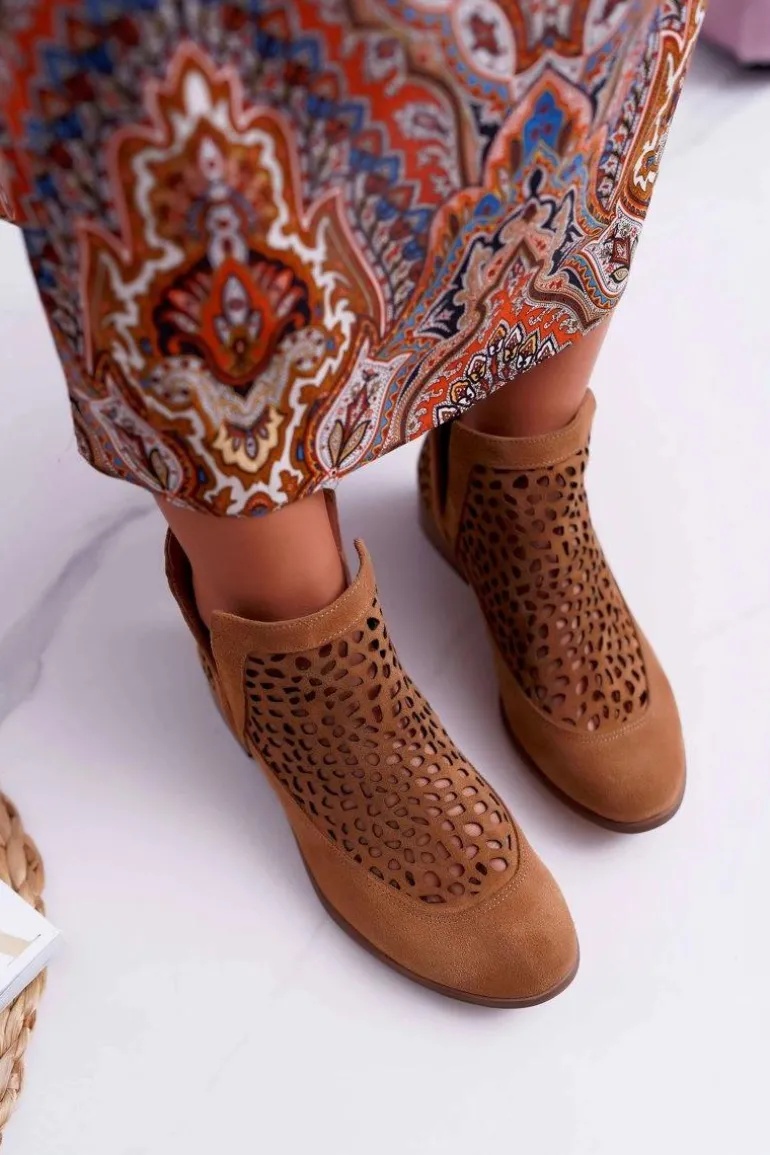 Botki Damskie Wiosenne Kowbojki Camel 2366 Draw