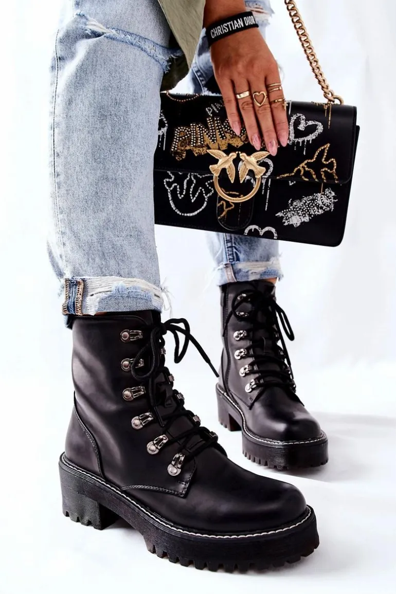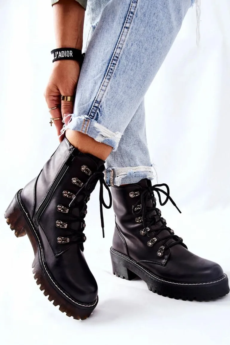 Sztywna cholewka, masywna podeszwa, klasyczny fason ze sznurowaniem. Odporna na zabrudzenia skóra ekologiczna. Przy wyborze rozmiaru prosimy sugerować się tabelą rozmiarów.