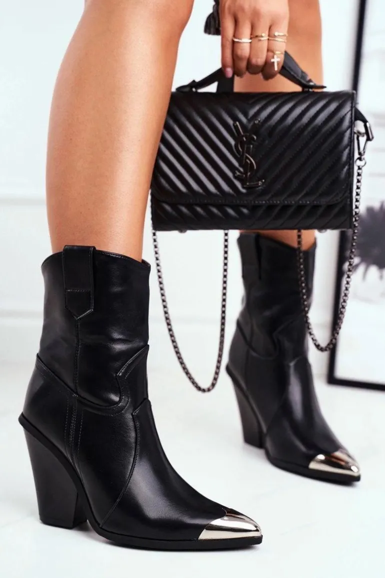 Botki Damskie Wysokie Stalowy Nosek Czarne Emporia