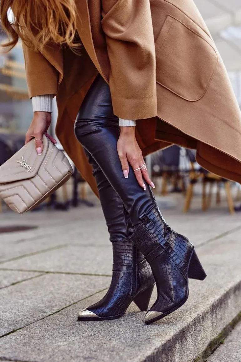 Botki Damskie Wysokie Stalowy Nosek Print Czarne Eternally