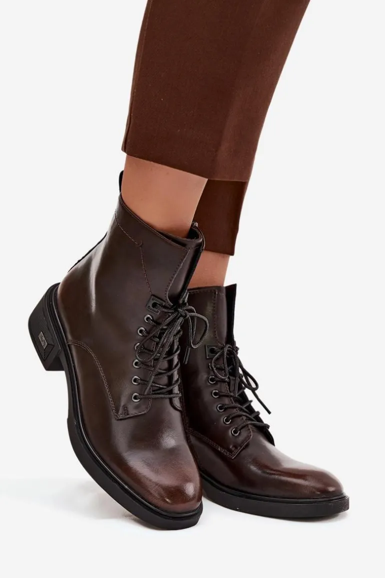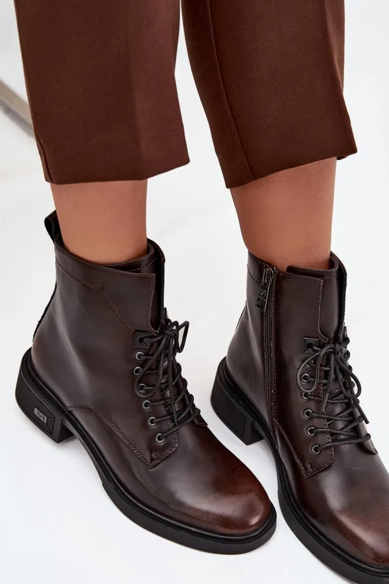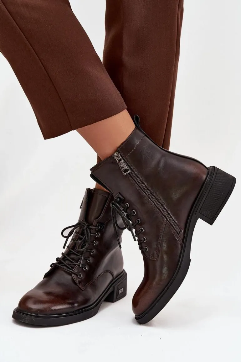 Botki damskie marki Vinceza wykonane z naturalnej skóry to połączenie klasyki i elegancji w codziennym wydaniu. Model osadzony na niskim obcasie gwarantuje wygodę, a połączenie sznurowania z zamkiem ułatwia zakładanie i dopasowanie do stopy. Zaokrąglone noski. Model ten świetnie sprawdzi się w codziennych stylizacjach. Przy wyborze rozmiaru prosimy sugerować się tabelą rozmiarów.