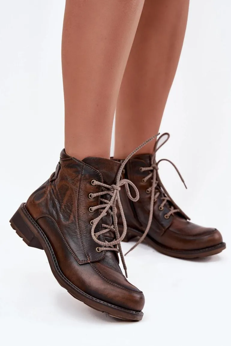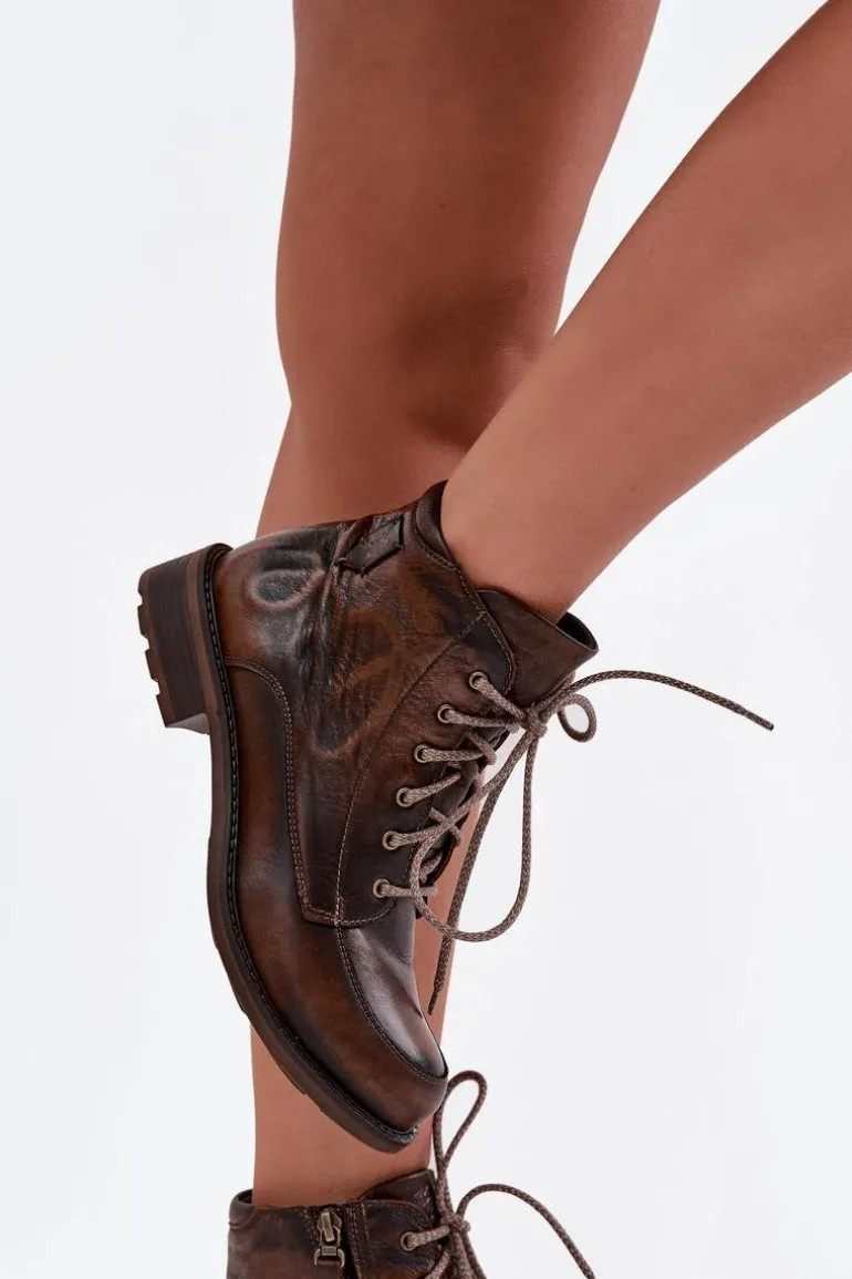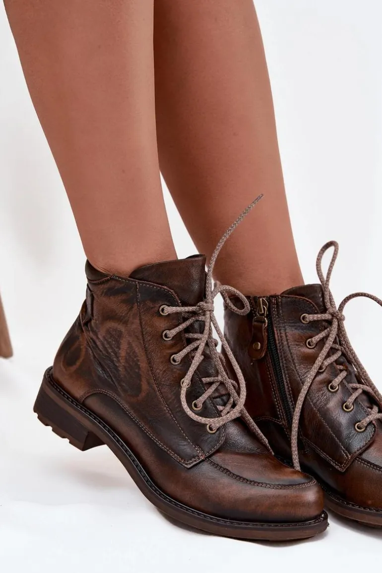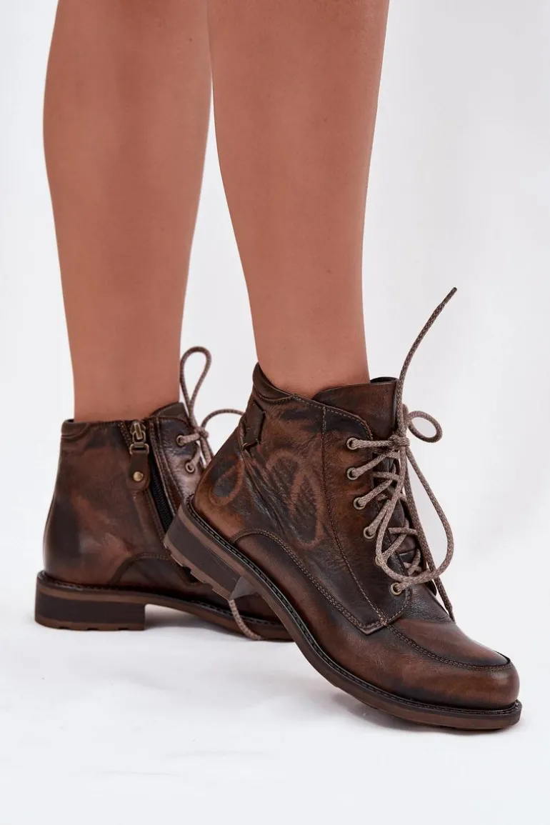 Botki Damskie Z Naturalnej Skóry Na Płaskim Obcasie Maciejka 07063-02 Brązowe
