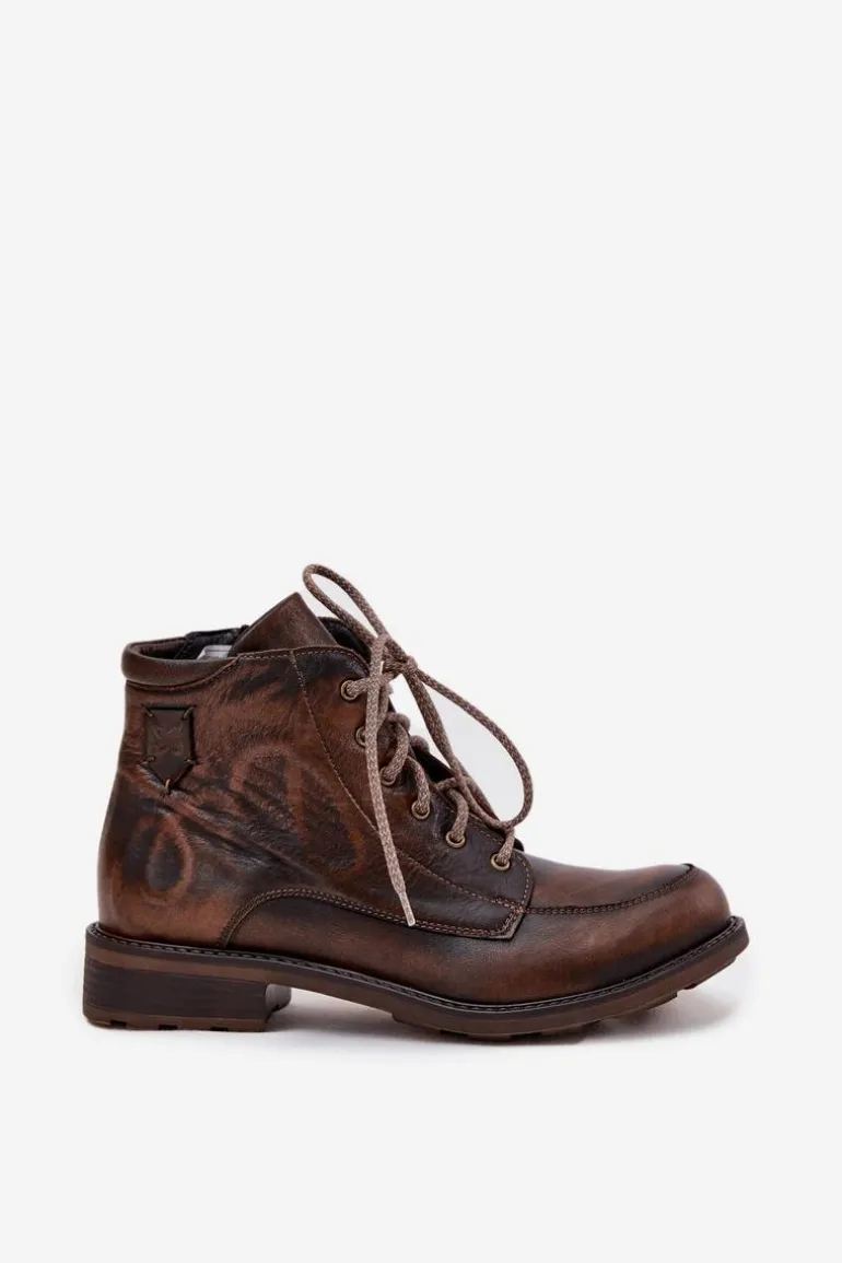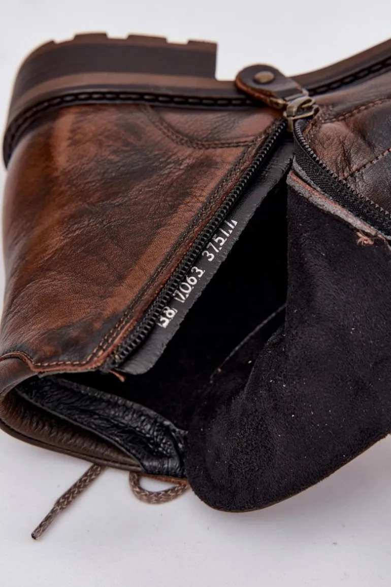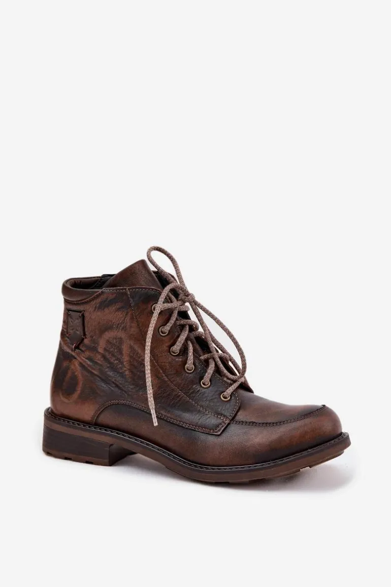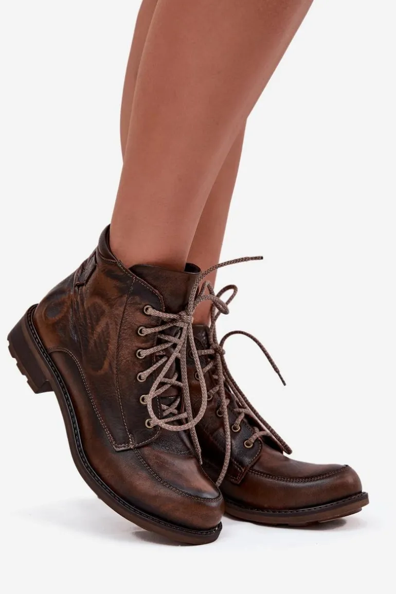 Botki Damskie Z Naturalnej Skóry Na Płaskim Obcasie Maciejka 07063-02 Brązowe
