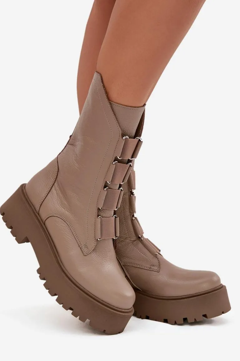 Botki Damskie Z Naturalnej Skóry Na Platformie Zazoo 3795 Beżowe