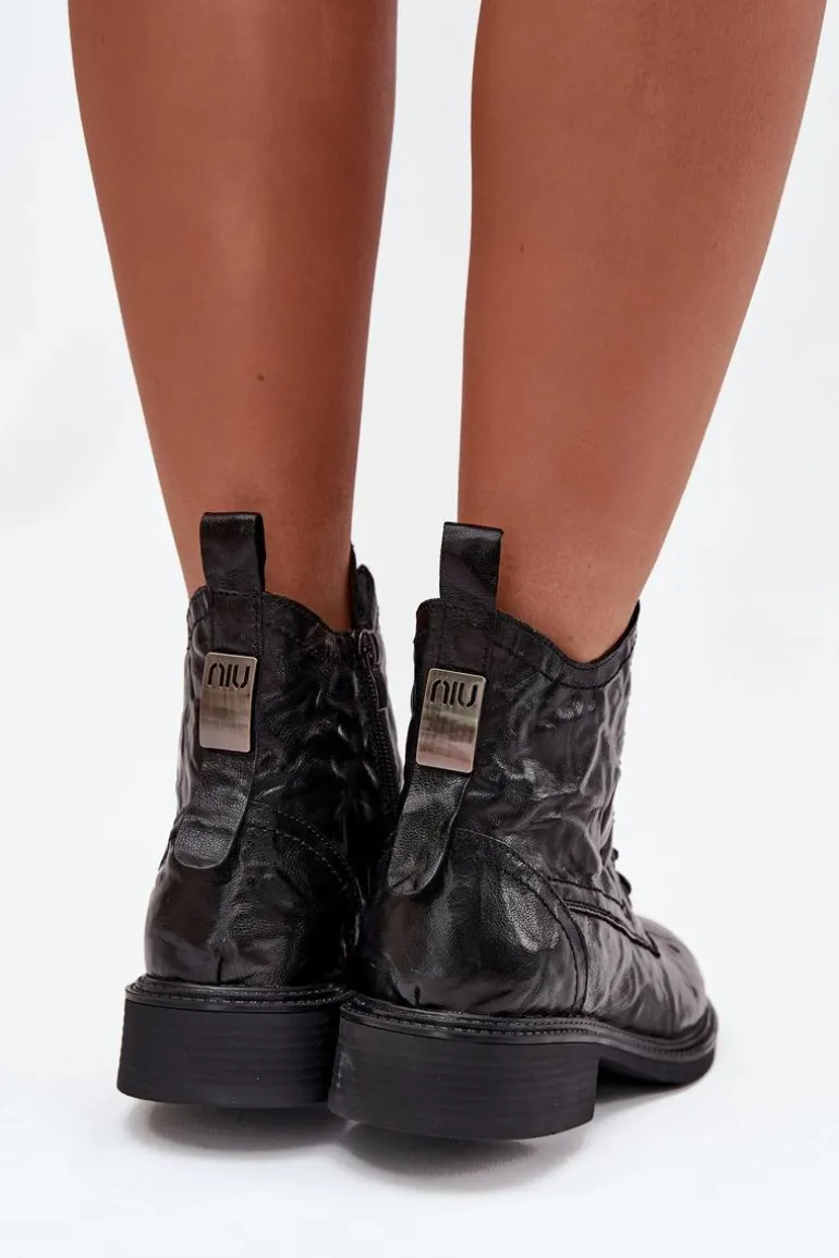 Botki damskie marki Artiker wykonane z naturalnej skóry to propozycja dla kobiet, które cenią sobie połączenie elegancji i wygody. Model posiada sznurowanie oraz boczny zamek, co sprawia, że buty łatwo dopasowują się do stopy i są wygodne w zakładaniu. Wnętrze ocieplone miękkim kocem obuwniczym zapewnia komfort termiczny w chłodniejsze dni, czyniąc je idealnym wyborem na jesień i zimę. Cholewka z efektem gniecenia nadaje całości oryginalnego, modnego charakteru, a ozdobny element z tyłu subtelnie podkreśla wyjątkowy design obuwia. Dzięki starannemu wykonaniu i dbałości o detale botki świetnie sprawdzą się zarówno w codziennych stylizacjach, jak i w bardziej eleganckich zestawach. Przy wyborze rozmiaru prosimy sugerować się tabelą rozmiarów.