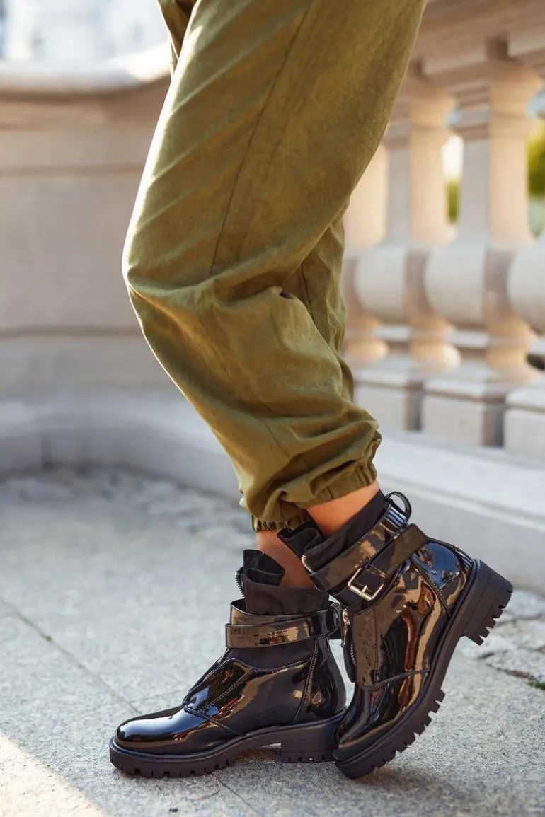 Botki Damskie z paskiem Lakierowane Czarne Joyce