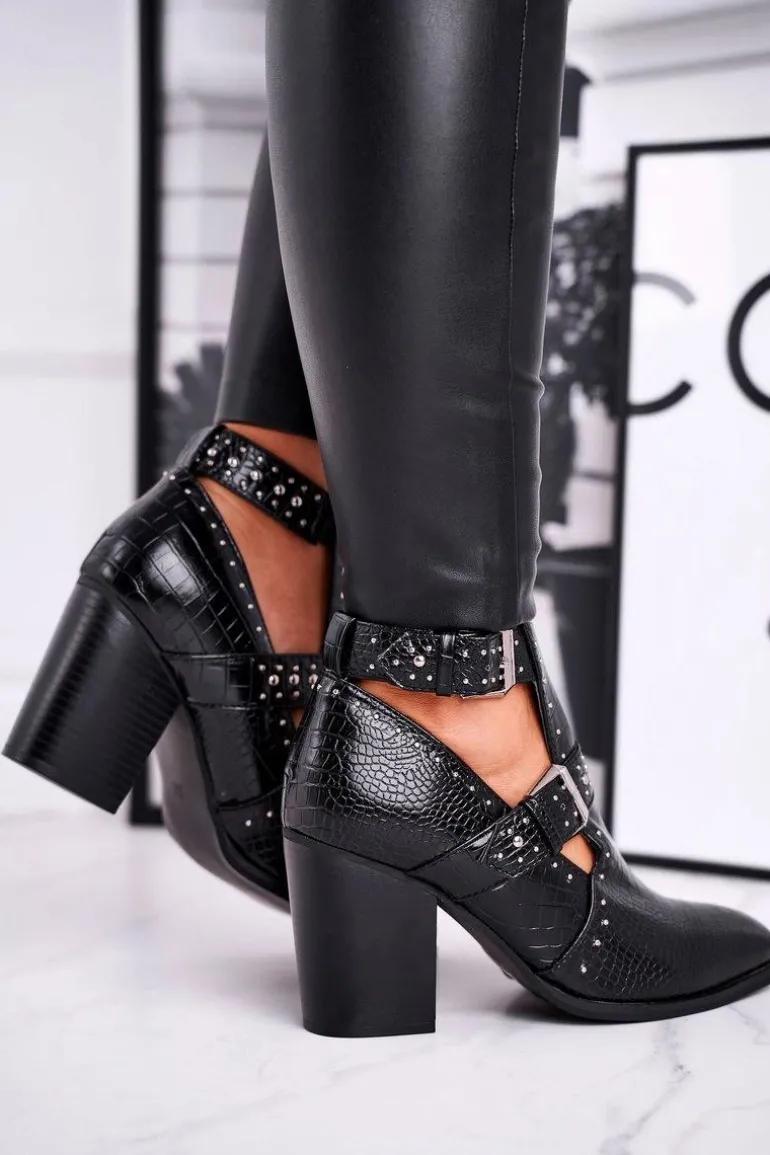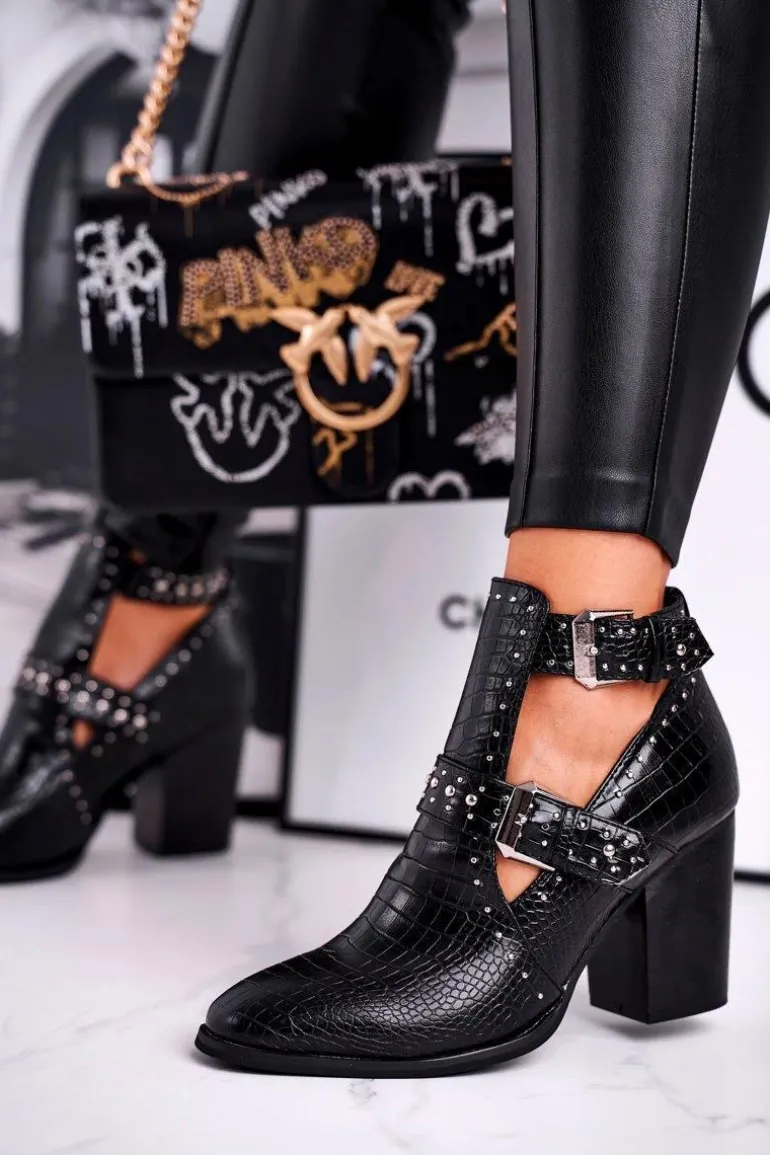 Botki Damskie Z Wycięciami Croco Czarne Aria