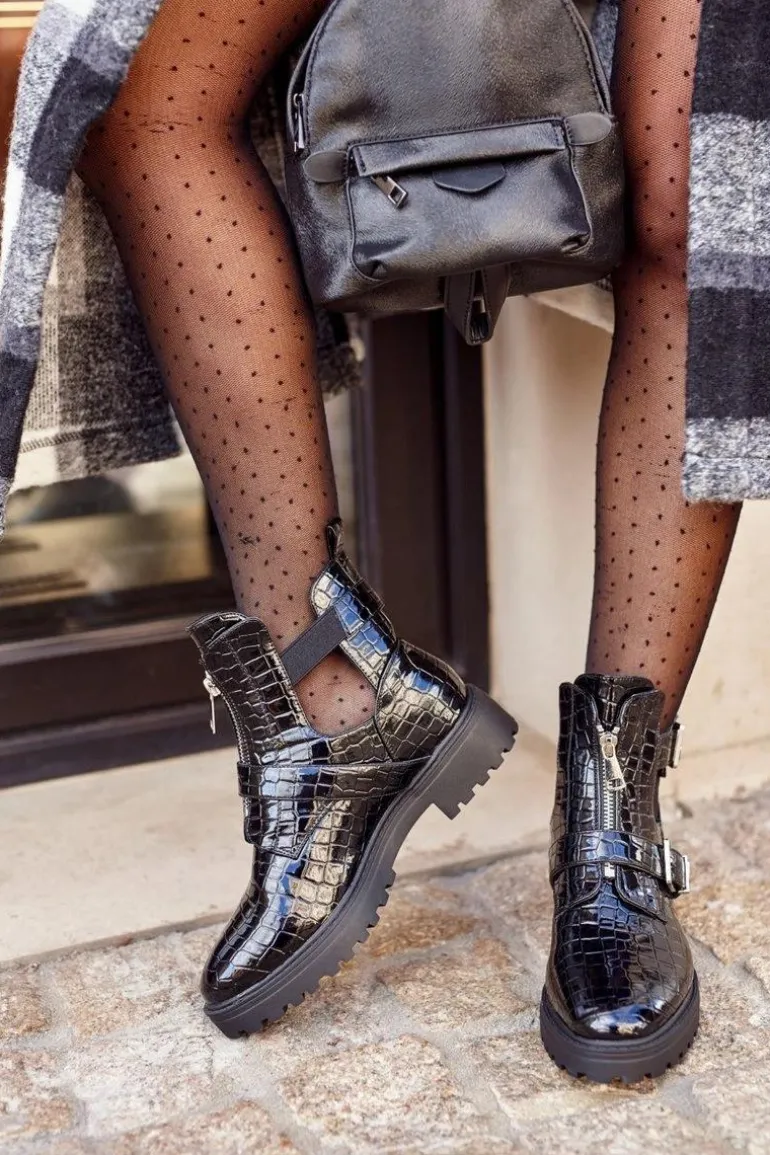 Botki Damskie Z Wycięciami Lakierowane Czarne Dorothy