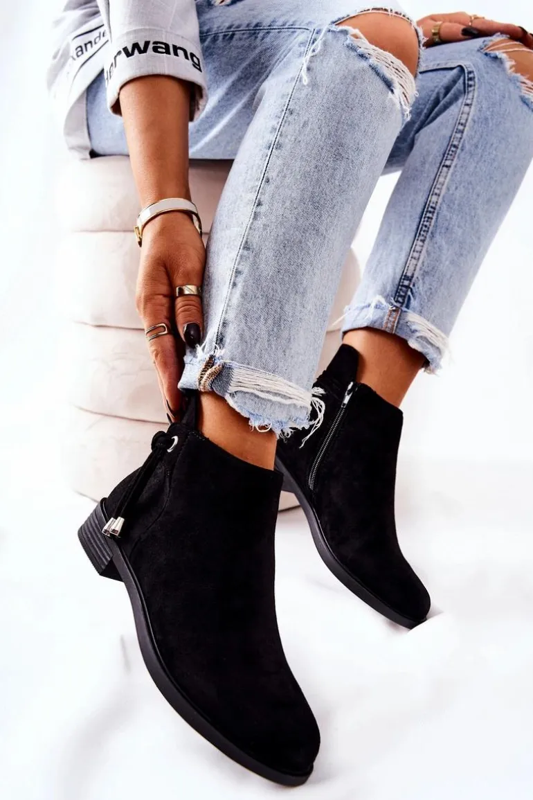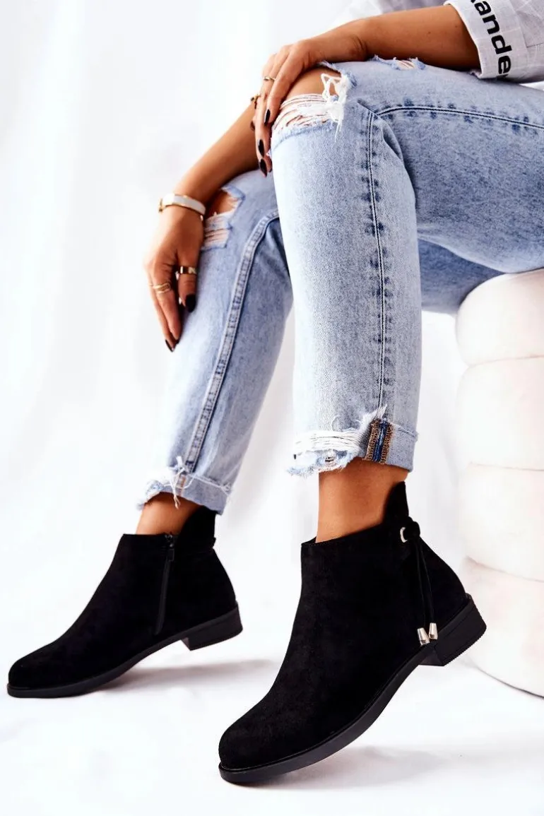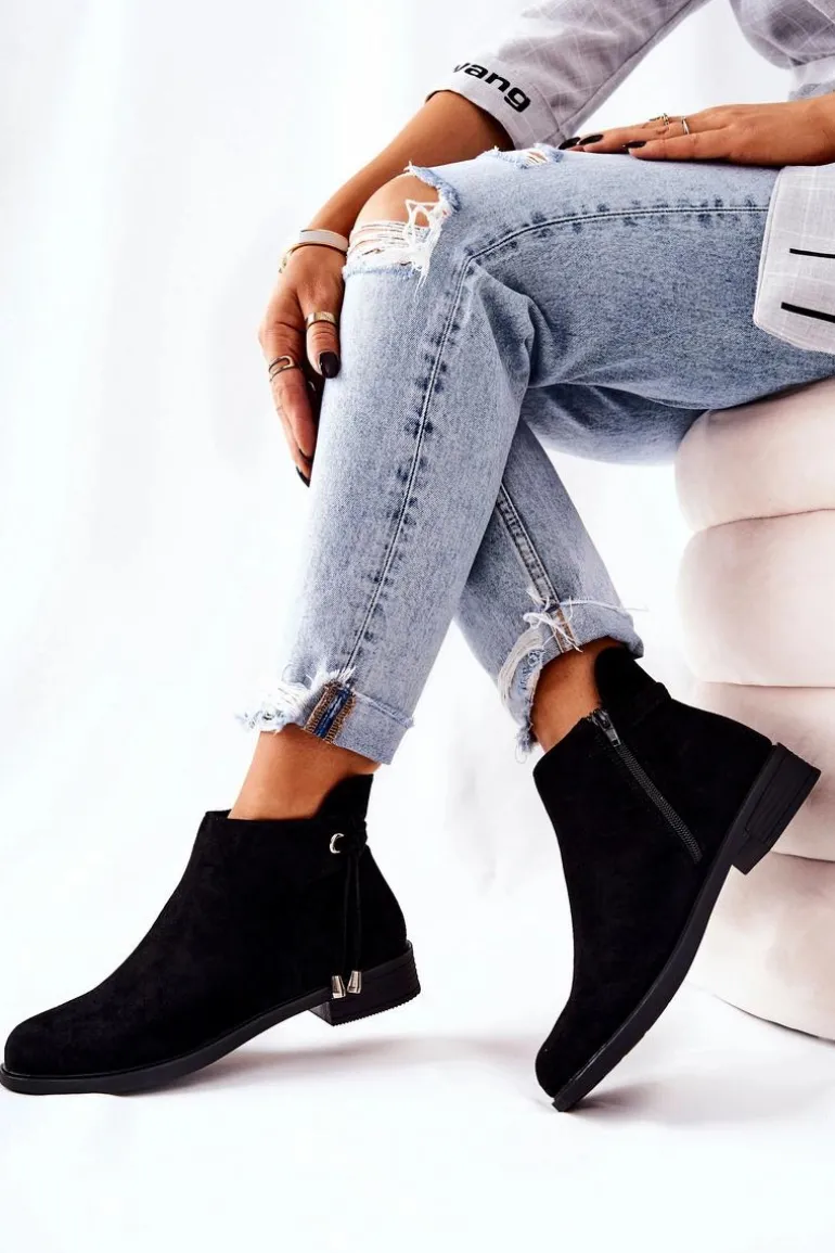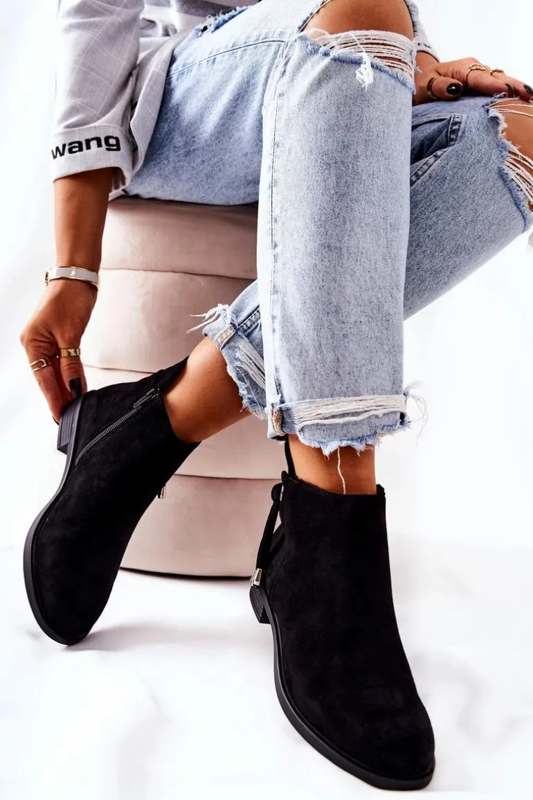 Botki Damskie Zamszowe Czarne Numbero