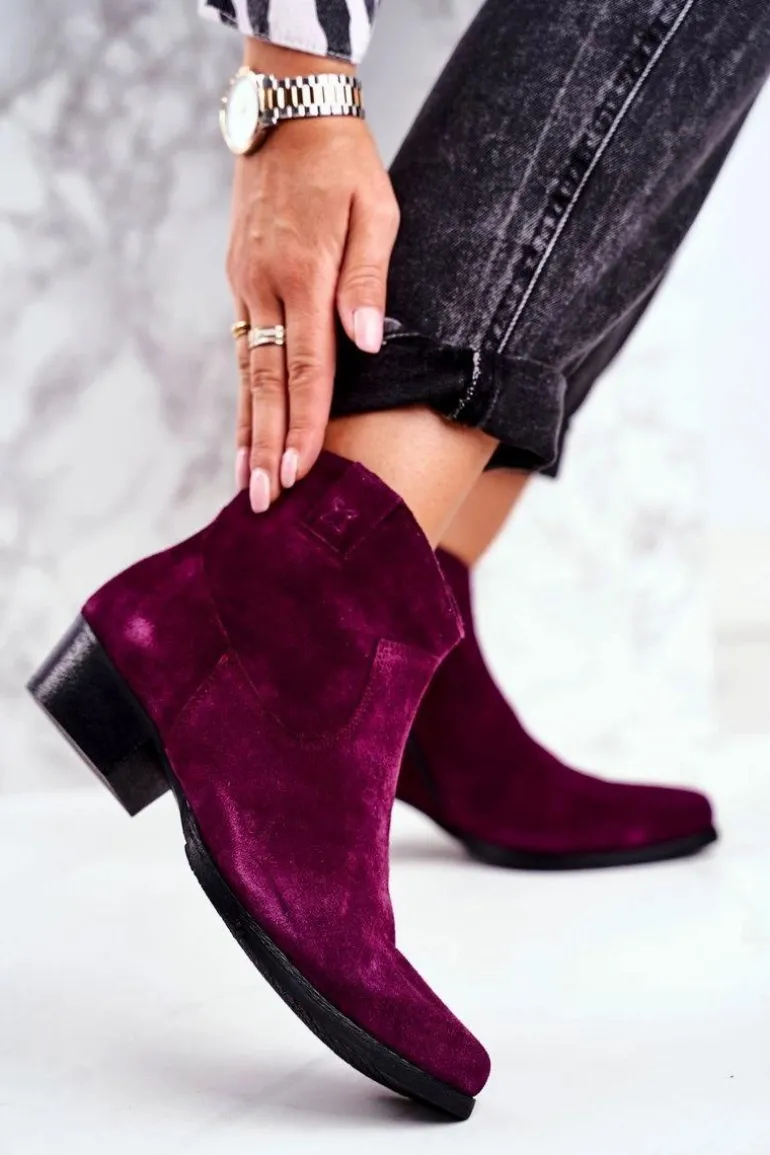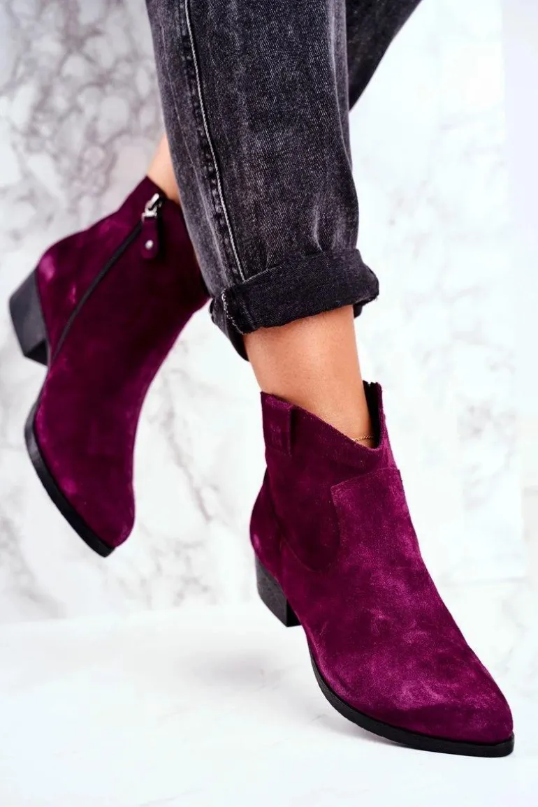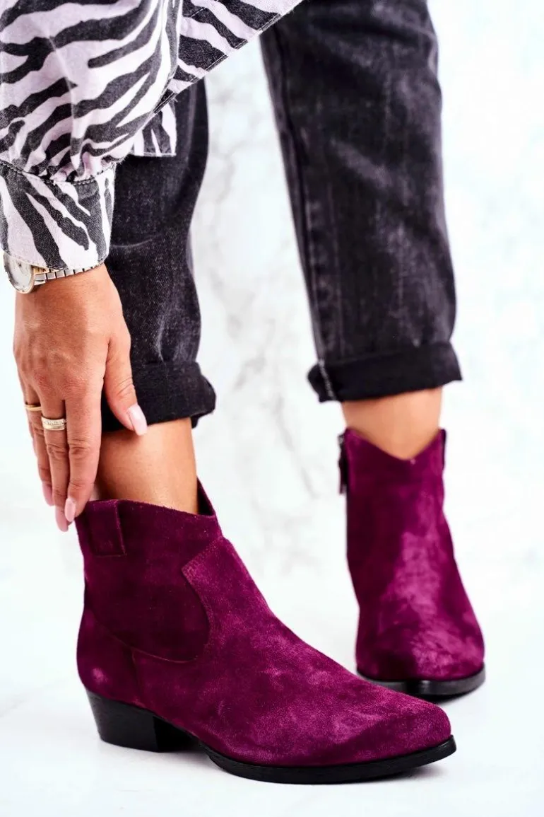 Botki Damskie Zamszowe Maciejka Fioletowe 04289-05