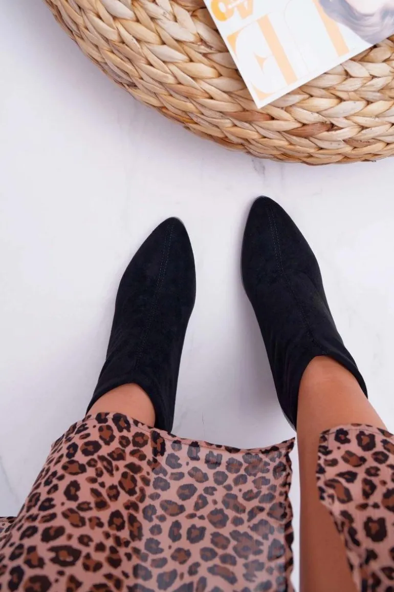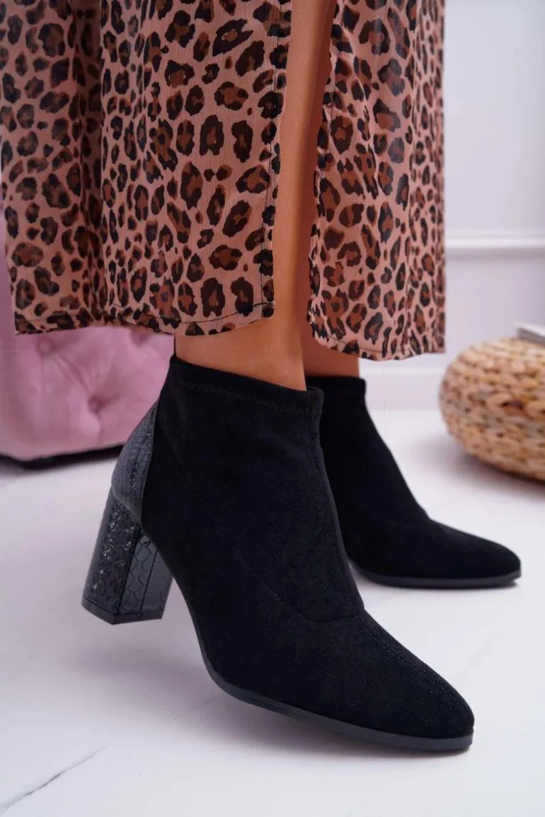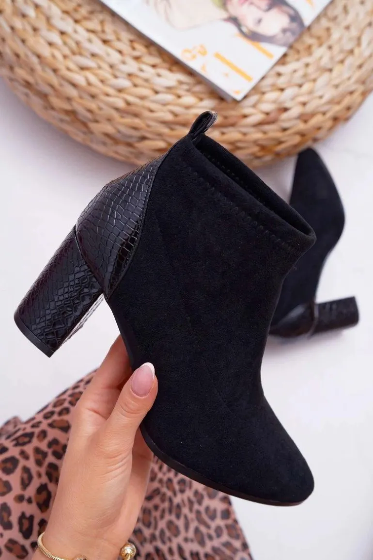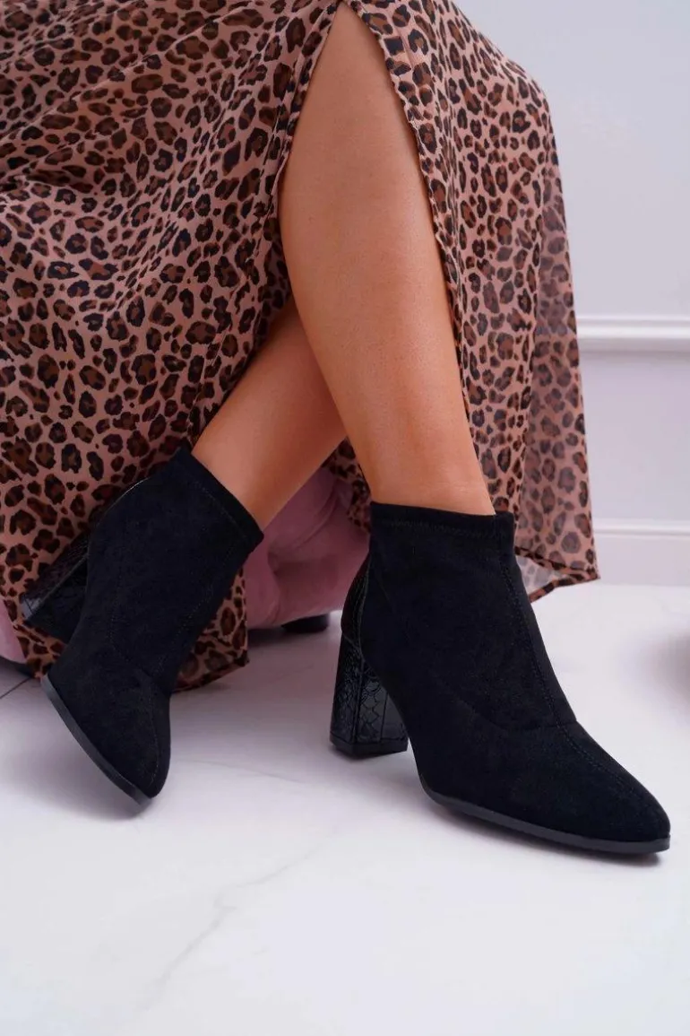 Botki Damskie Zamszowe Na Słupku Czarne Ferrous