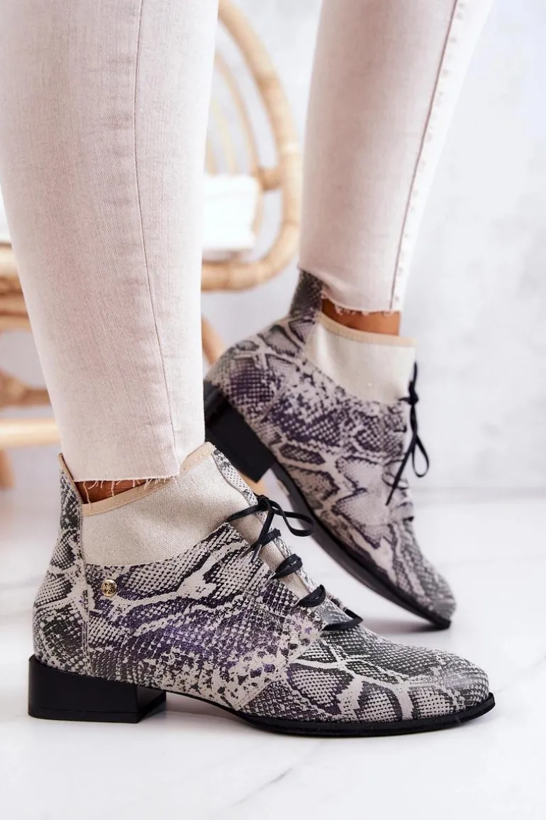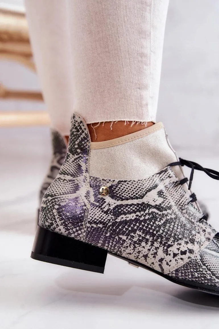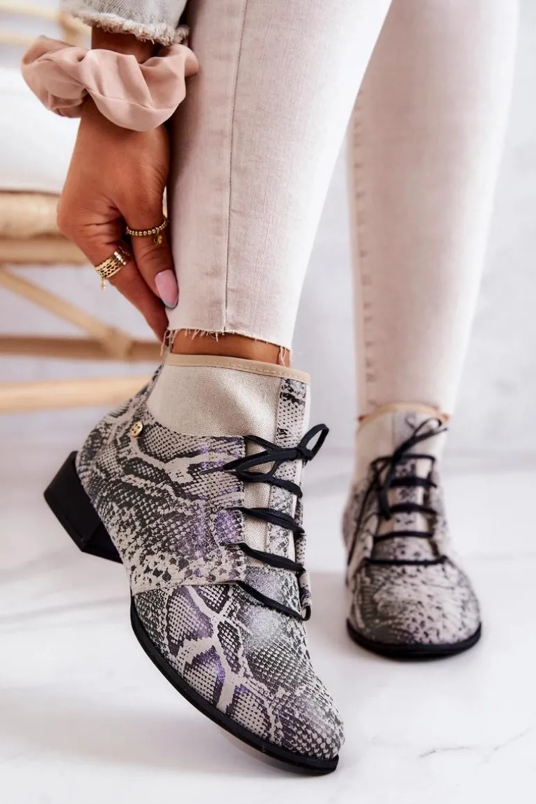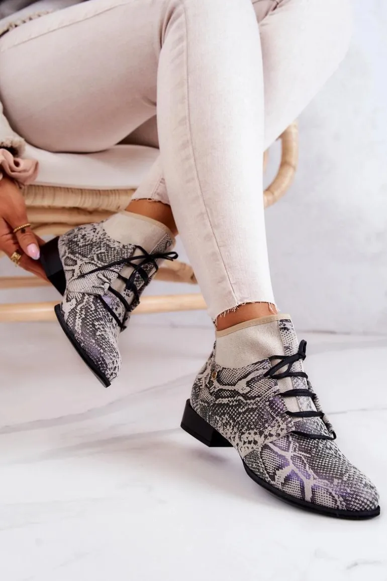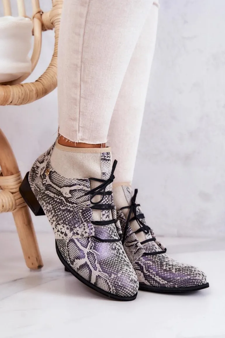 Niezwykle stylowe trzewiki od firmy Maciejka już dostępne! Na pewno przykuwają uwagę swoim niecodziennym designem. Połączenia kilku rodzajów skór o różnej fakturze, nadaje im iście eleganckiego i modnego stylu. Delikatny płaski obcas oraz sznurowana cholewka. Z takimi butami, Ty i Twoje stylizacje z pewnością zostaniecie zauważone. Przy wyborze rozmiaru prosimy sugerować się tabelą rozmiarów.