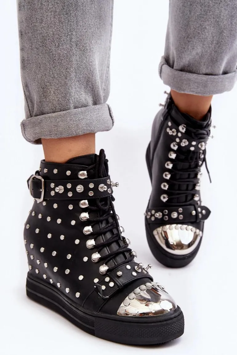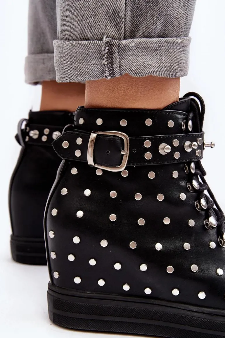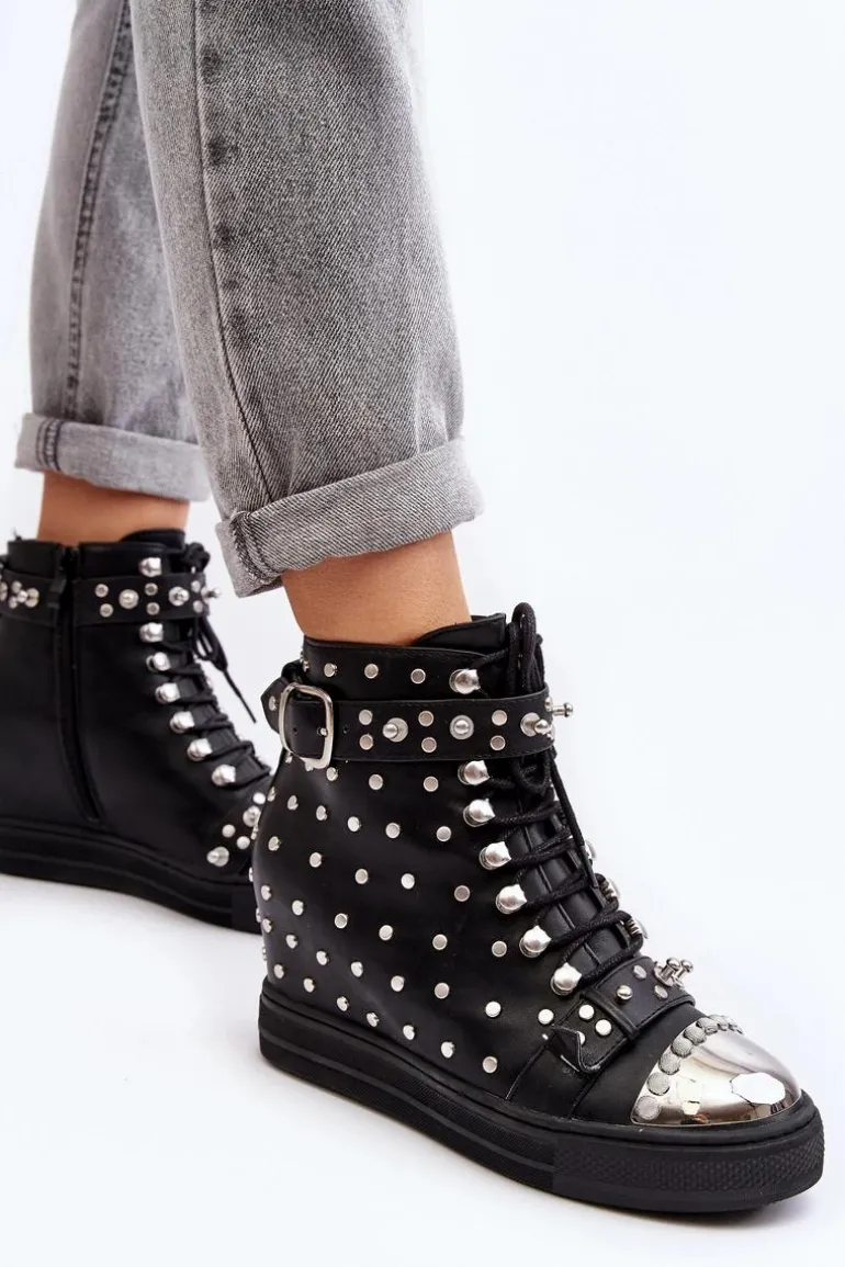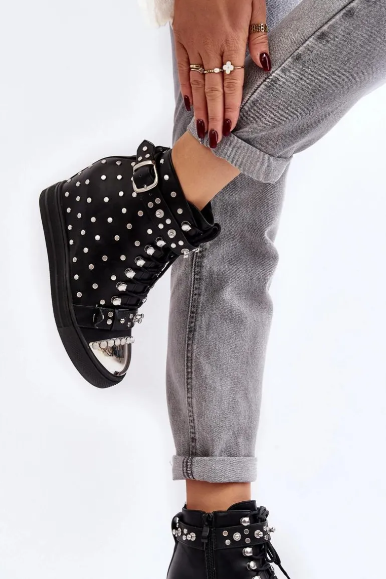 Botki Damskie Zdobione Dżetami Na Koturnie Lu Boo Czarne