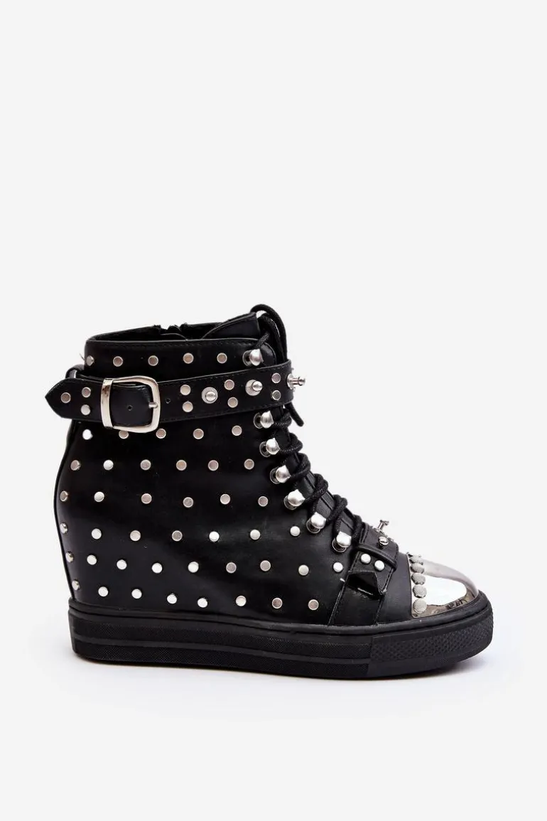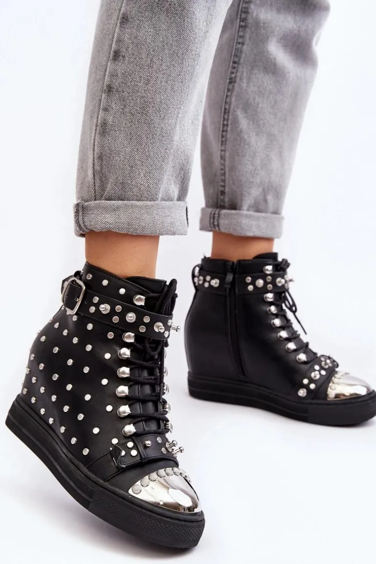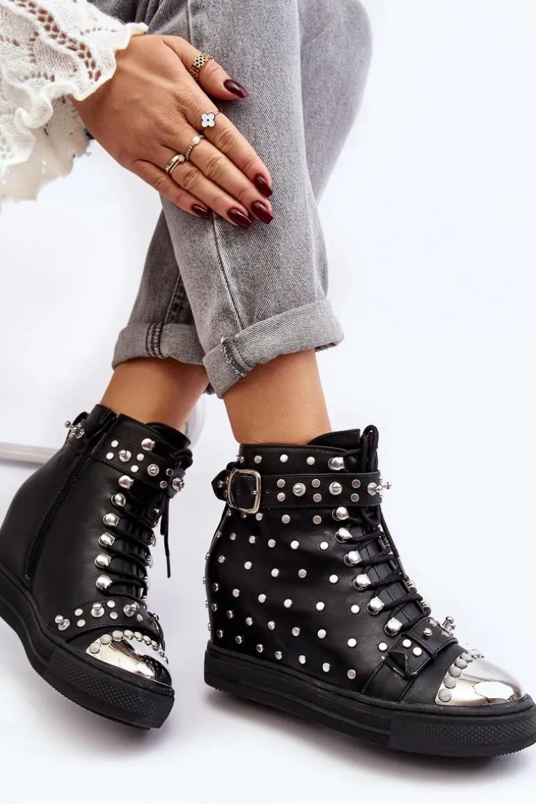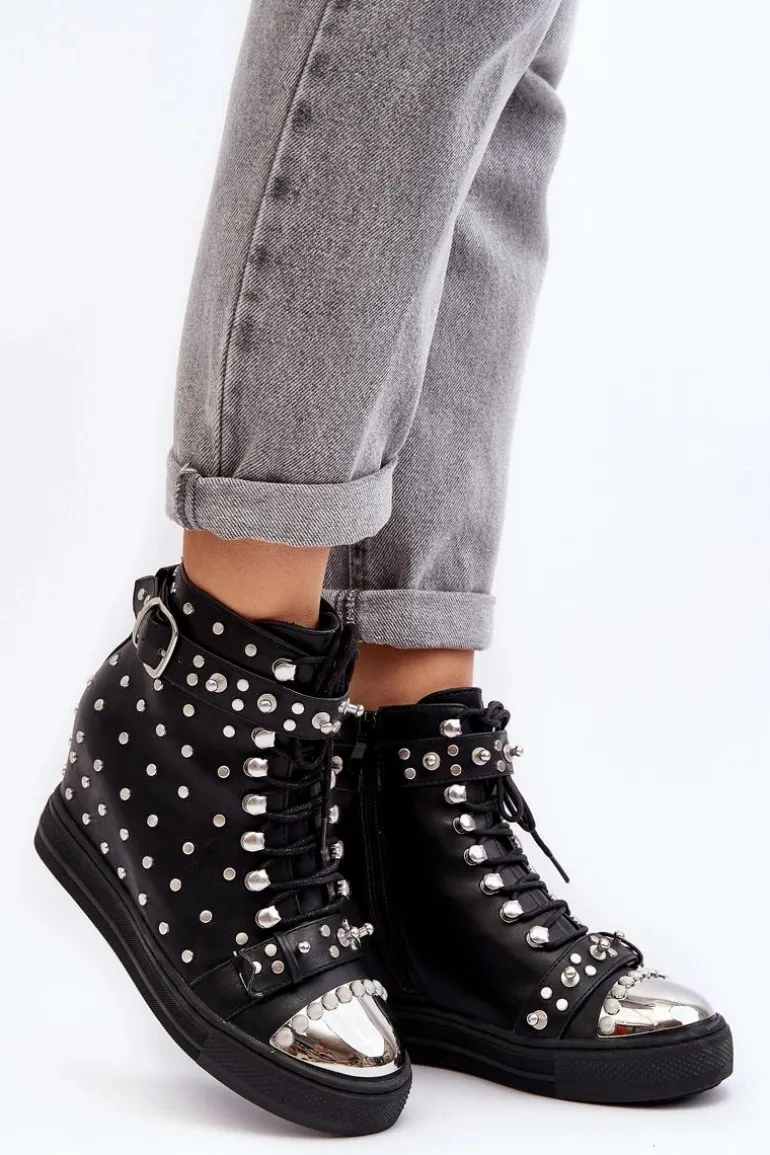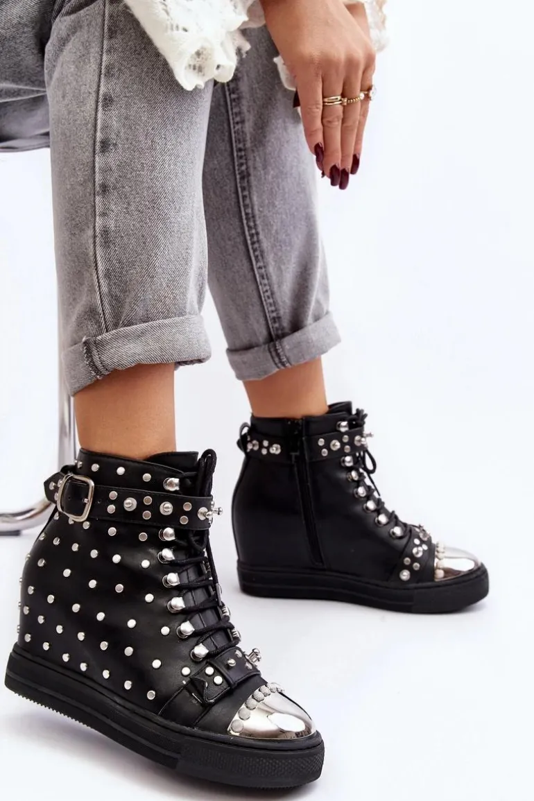 Botki Damskie Zdobione Dżetami Na Koturnie Lu Boo Czarne