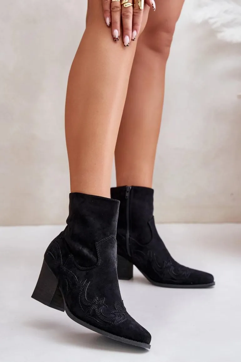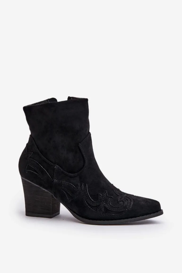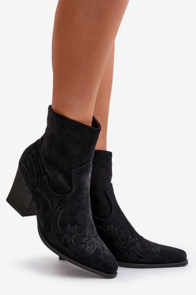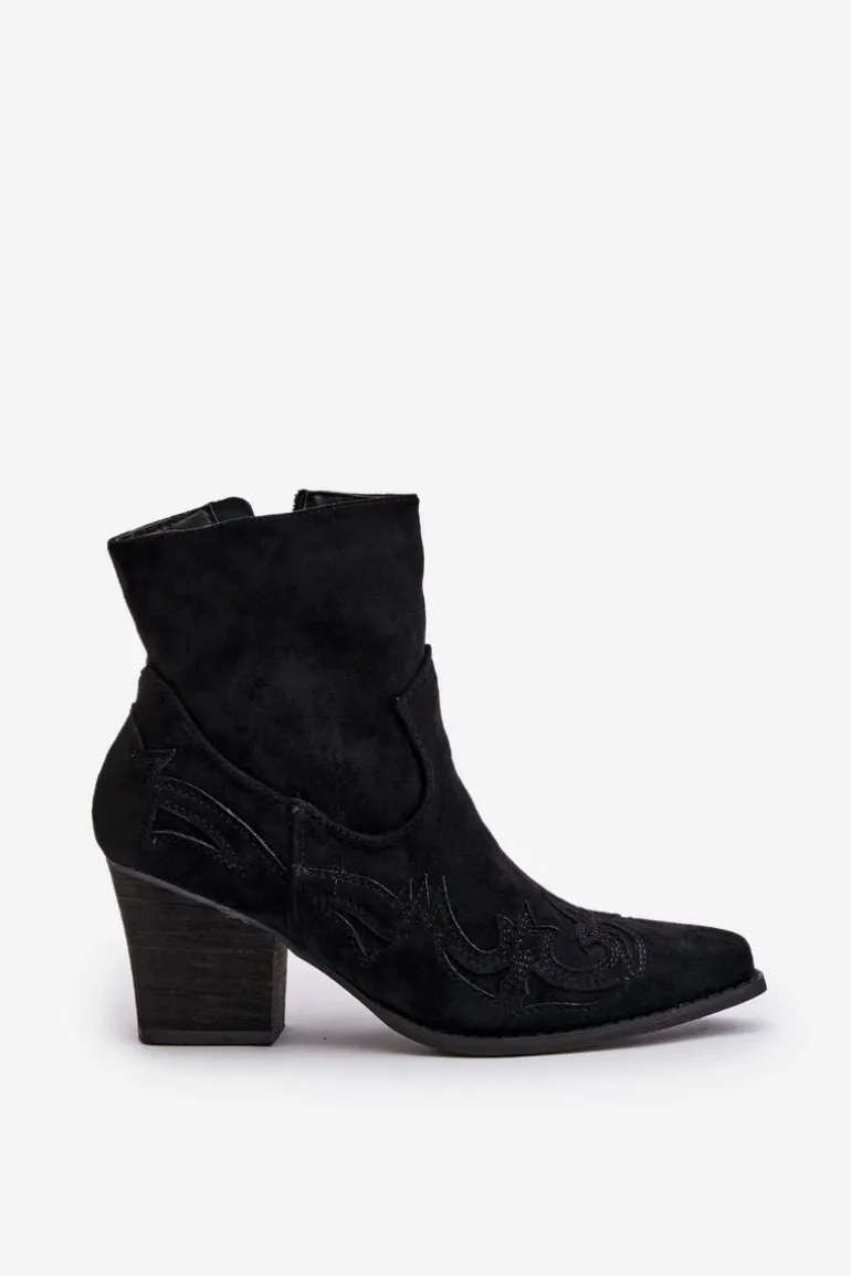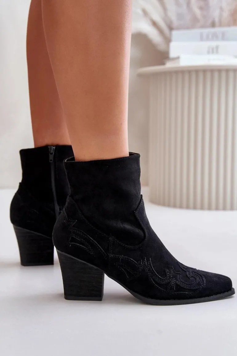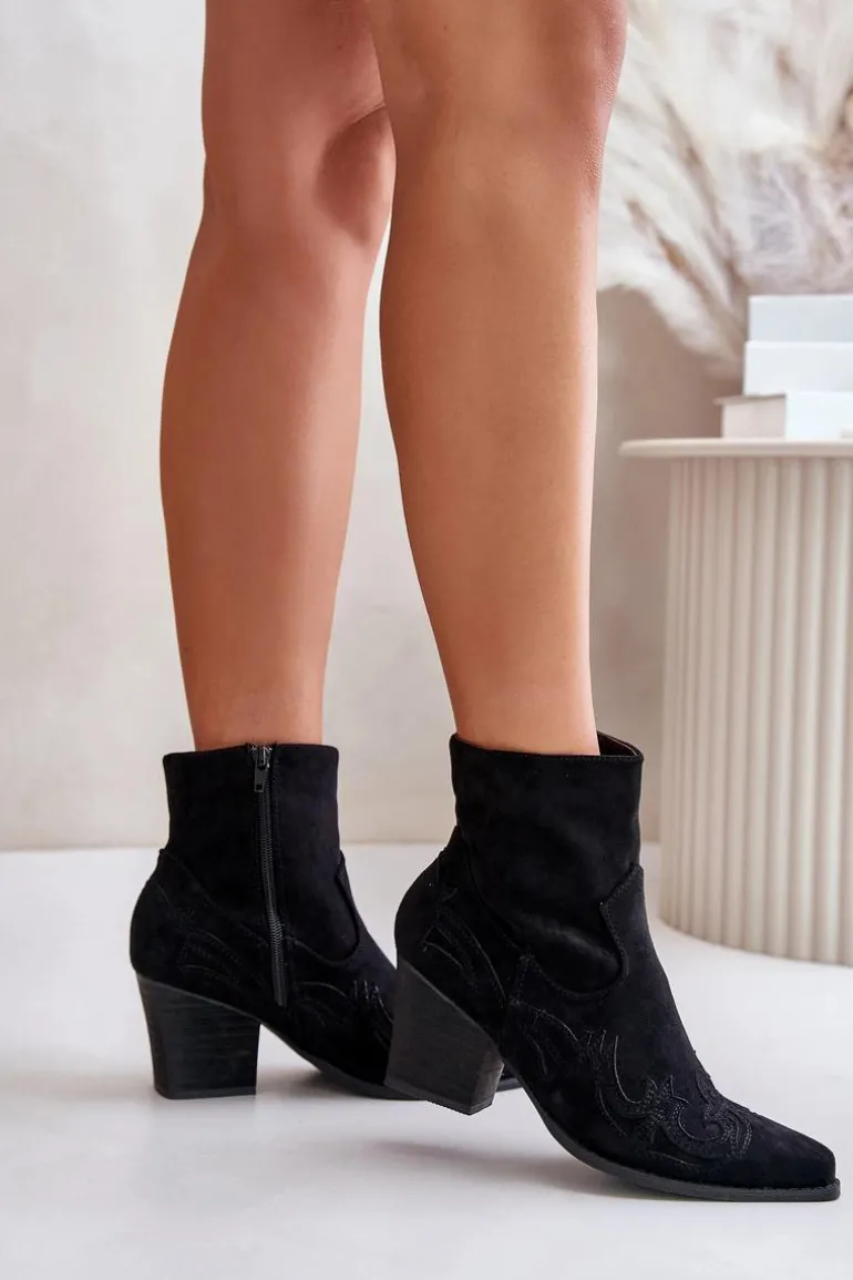 Botki o fasonie kowbojek zostały wykonane z eko zamszu. Zapinane na zamek błyskawiczny. Dodatkowo posiadają usztywniany zapiętek. Model ten wyróżnia się przeszyciami na cholewce. Noski w szpic optycznie wysmuklą nogi. Botki typu kowbojki będą świetnym uzupełnieniem wielu stylizacji. Możesz nosić je w wielu stylizacjach m.in.: do sukienek, zwiewnych spódnic czy spodni jeansowych. Przy wyborze rozmiaru prosimy sugerować się tabelą rozmiarów.