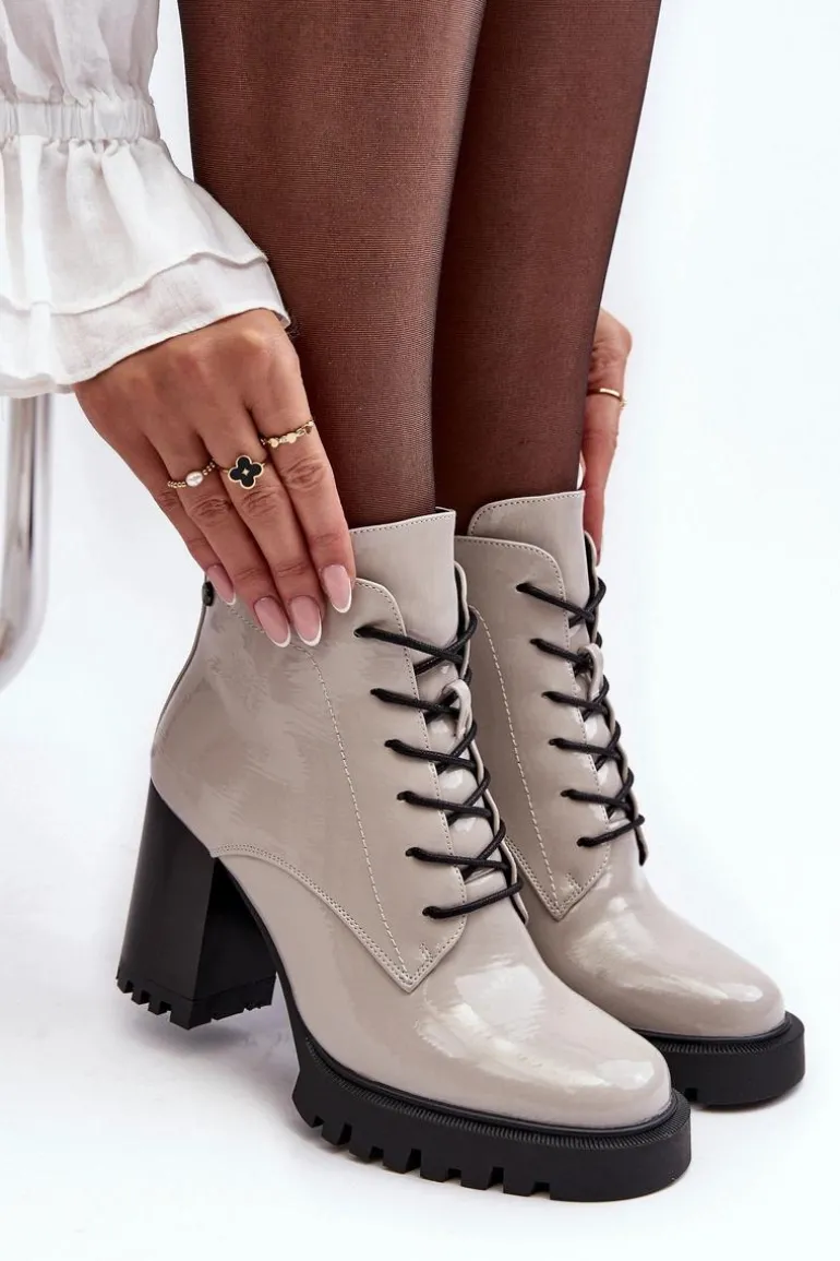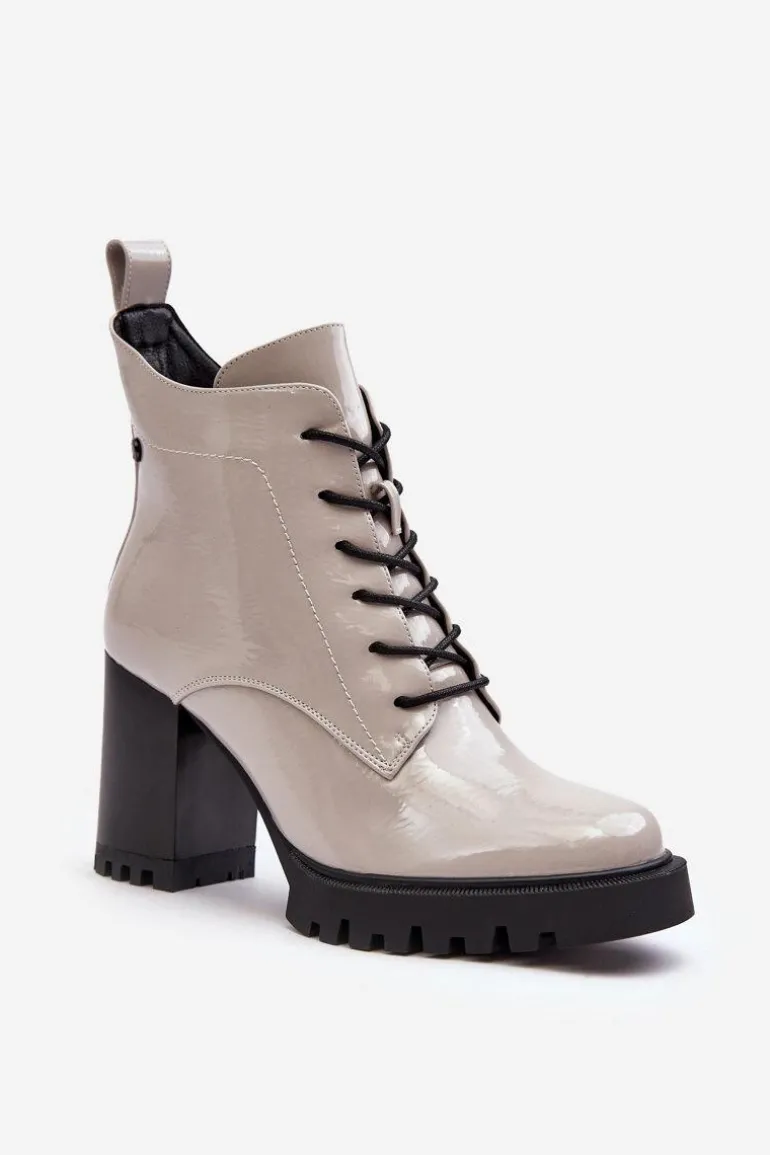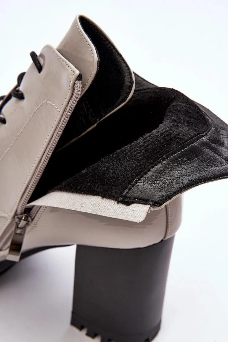 Botki Lakierowane Na Słupku Ocieplane Jasnoszare S.Barski MR870-54