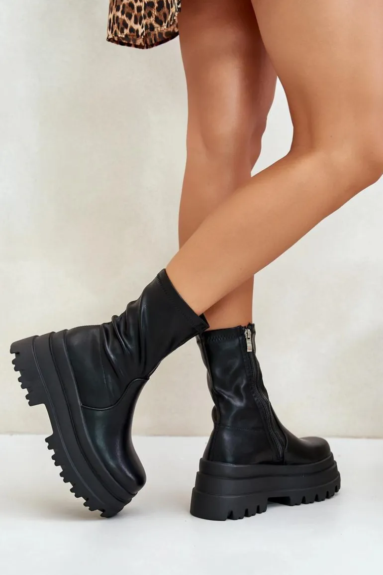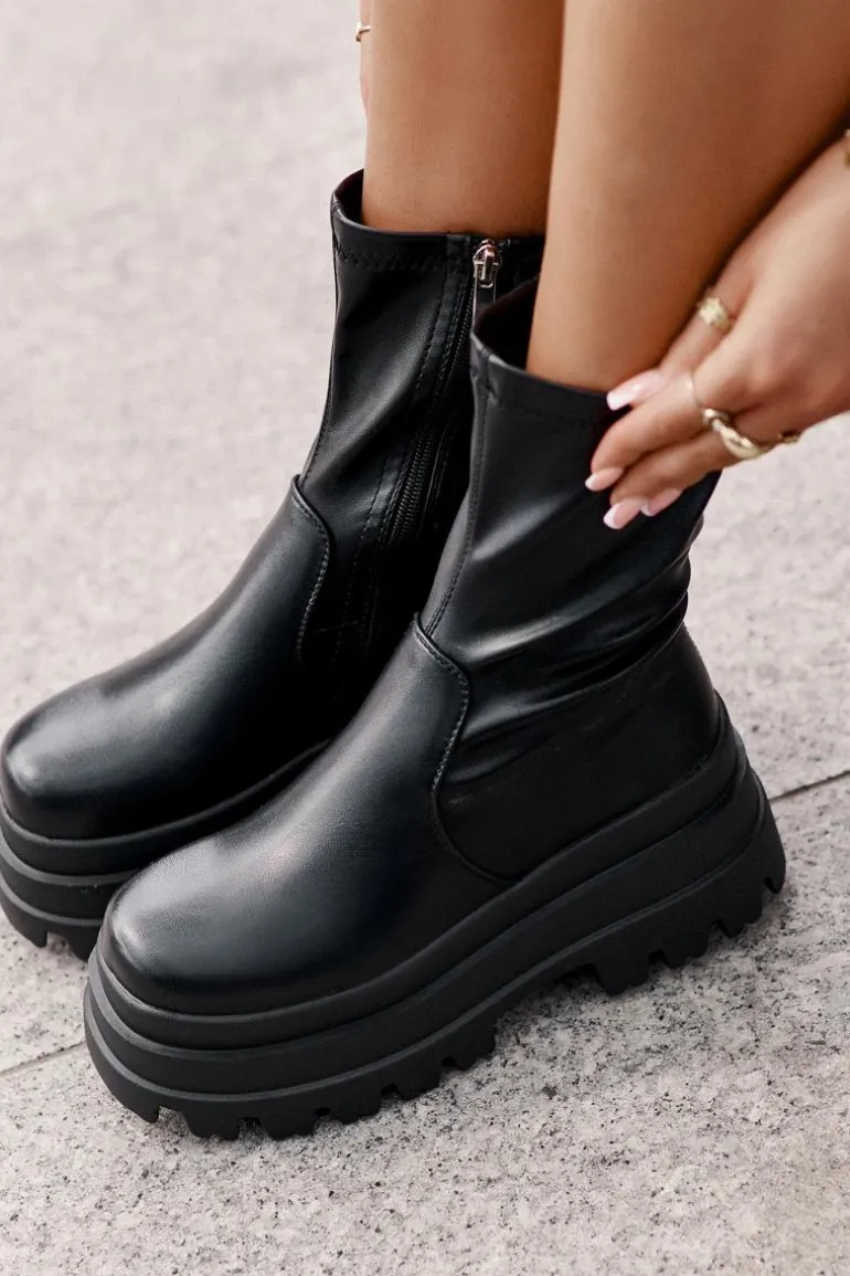 Botki wykonane z eko skóry. Model ten wyróżnia się masywną podeszwą, która doskonale odizoluje od zimnego podłoża. Zapinane na zamek. Noski zaokrąglone. Ocieplane kocem obuwniczym wyłącznie na wysokości stopy. Koniecznie sprawdź całą naszą ofertę damskich botków! Przy wyborze rozmiaru prosimy sugerować się tabelą rozmiarów.