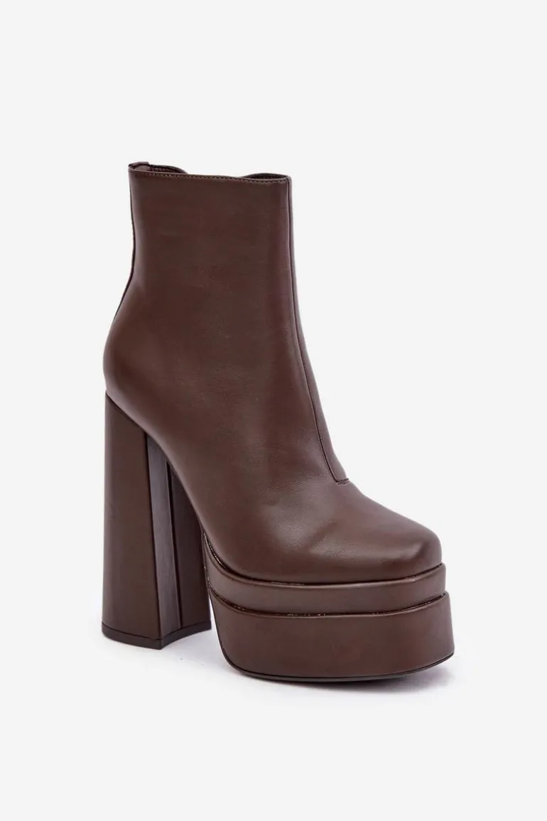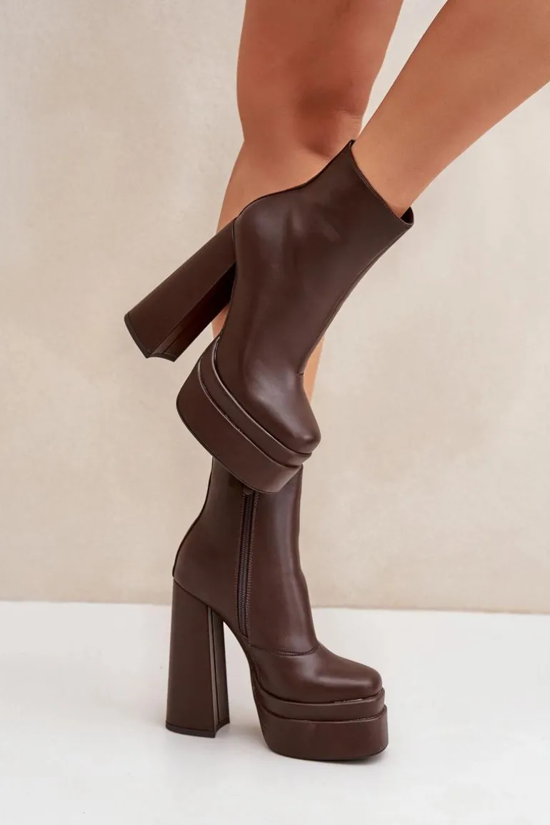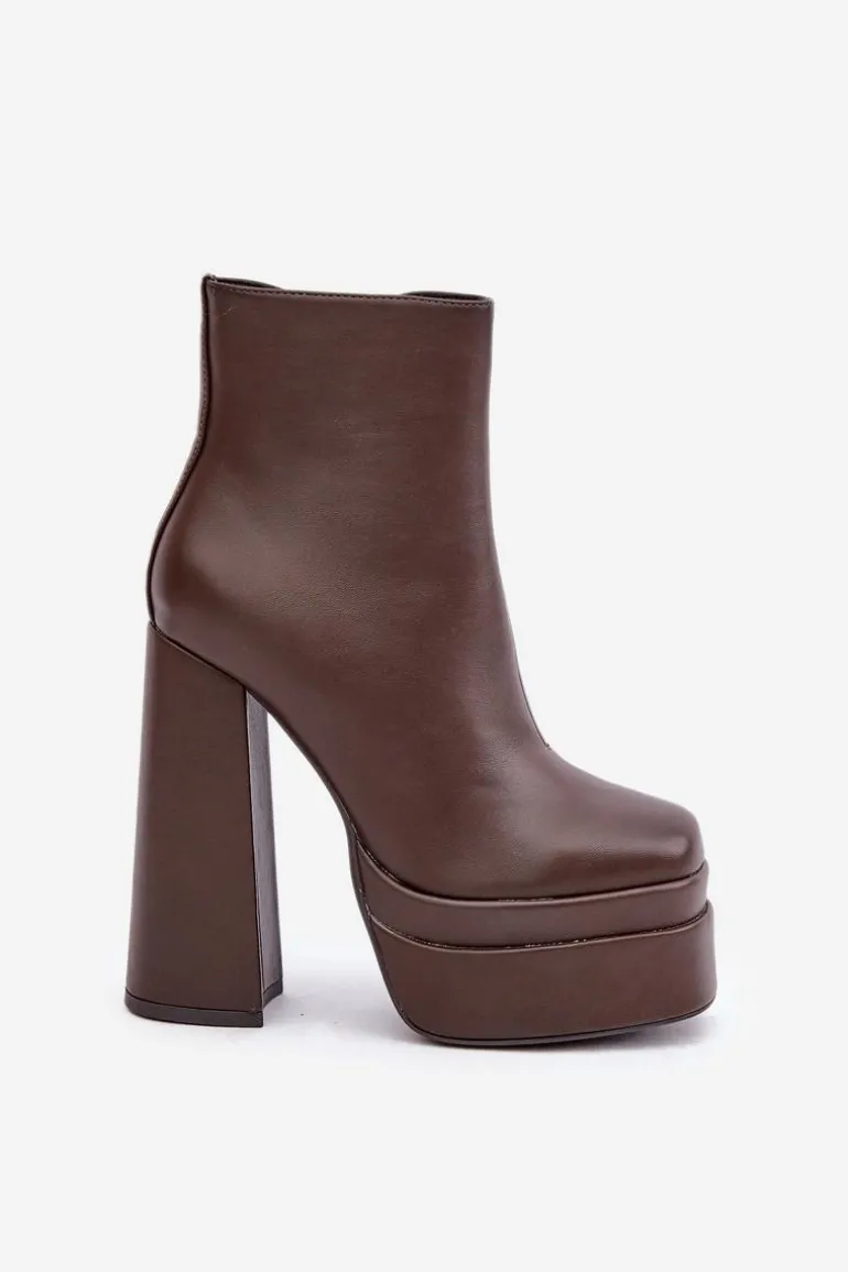 Botki damskie wykonane z eko skóry, osadzone na masywnej platformie i wysokim obcasie, które dodają charakteru każdej stylizacji. Model z zaokrąglonymi noskami zapewnia komfort noszenia. Wnętrze ocieplane kocem obuwniczym, idealne na chłodniejsze dni. Praktyczne zapięcie na zamek ułatwia zakładanie. Stylowe i wygodne, doskonałe na co dzień i specjalne okazje. Przy wyborze rozmiaru prosimy sugerować się tabelą rozmiarów.
