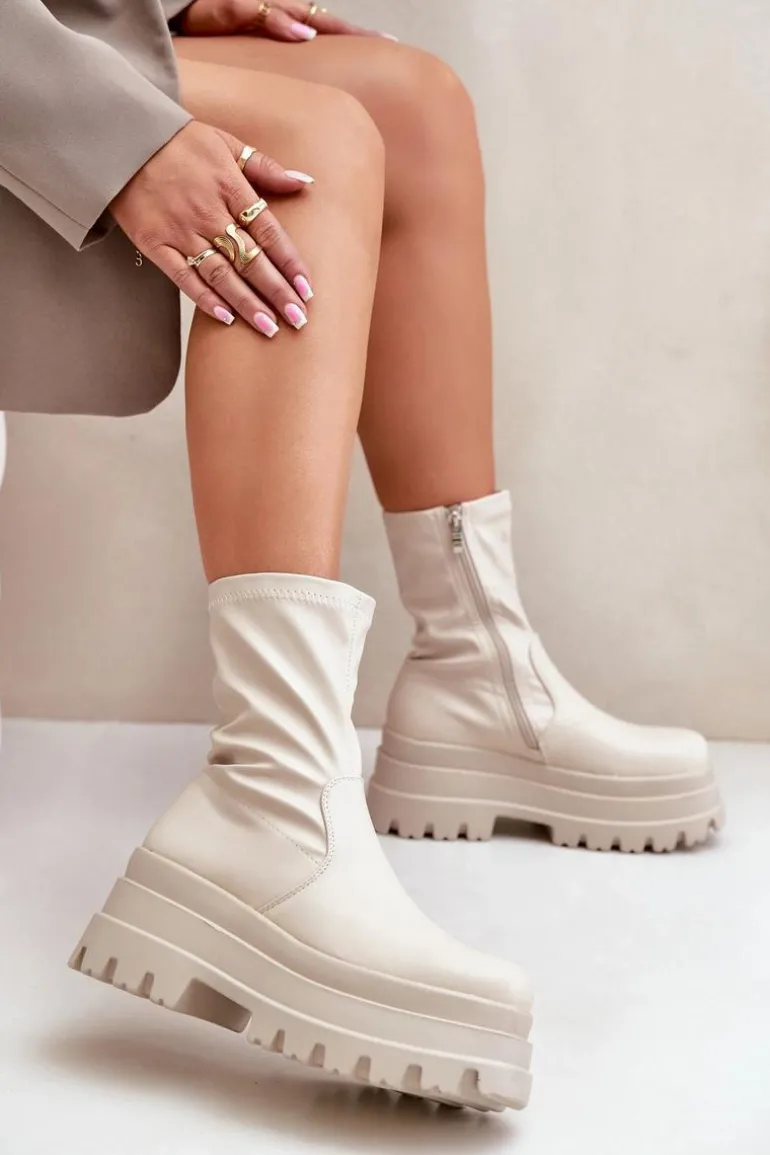 Botki wykonane z eko skóry. Model ten wyróżnia się masywną podeszwą, która doskonale odizoluje od zimnego podłoża. Zapinane na zamek. Noski zaokrąglone. Ocieplane kocem obuwniczym wyłącznie na wysokości stopy. Koniecznie sprawdź całą naszą ofertę damskich botków! Przy wyborze rozmiaru prosimy sugerować się tabelą rozmiarów.