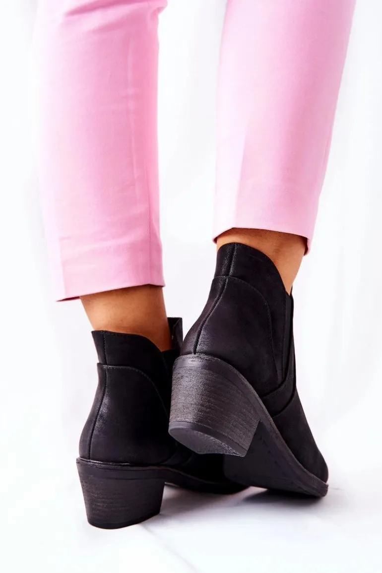 Stylowe botki marki Sergio Leone. Botki wykonane są z wysokiej jakości eko skóry. Ocieplane są delikatnym futerkiem, które jest przyjemne w dotyku. Botki są wsuwane, na niskim obcasie. Cholewka dopasuje się do każdej nogi, dzięki elastycznemu materiałowi. Dołącz do grona zachwyconych klientek i ciesz się nową parą butów! Przy wyborze rozmiaru prosimy sugerować się tabelą rozmiarów.