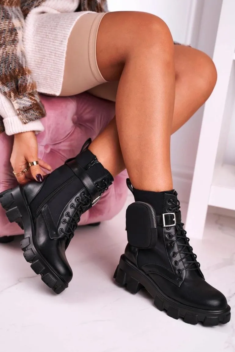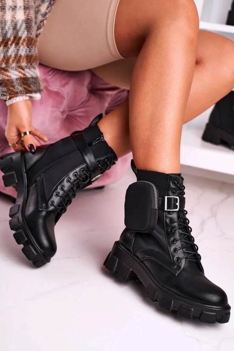 Botki wykonane są ze skóry ekologicznej oraz odpornego na zabrudzenia materiału. Workery świetnie wpiszą się w stylizacje glam rock lub grunge. Przy wyborze rozmiaru prosimy sugerować się tabelą rozmiarów. Pasek oraz torebka są odpinane.