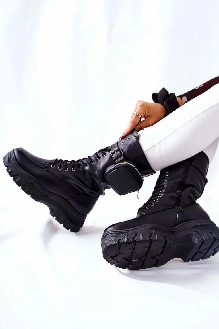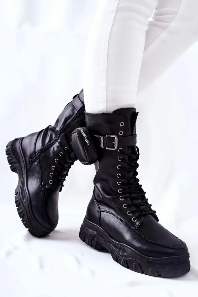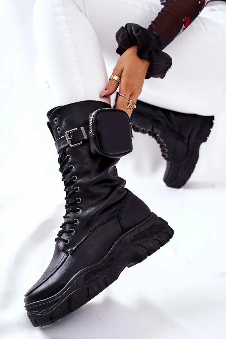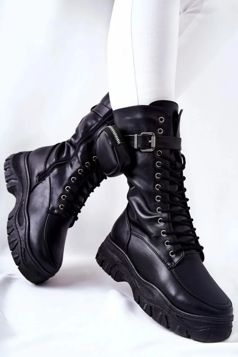 Wysokie botki z nerką na pasku świetnie będą pasować do wielu stylizacji! Posiadają suwak ułatwiający zakładanie oraz wiązanie. Pasek zapinany na sprzączkę, regulowany. Botki zostały wykonane z eko skóry. Wnętrze zostało ocieplone przyjemnym w dotyku i miękkim futerkiem. Przy wyborze rozmiaru prosimy kierować tabelą rozmiarów.