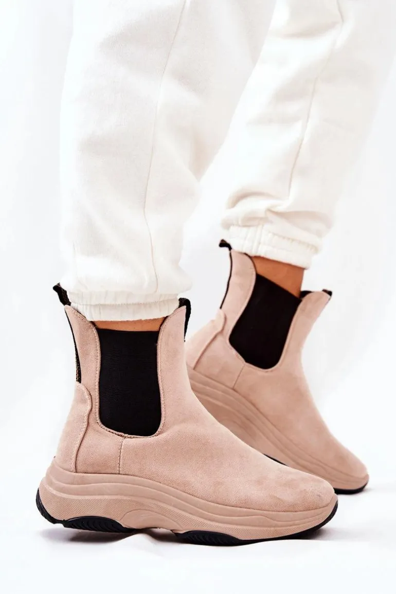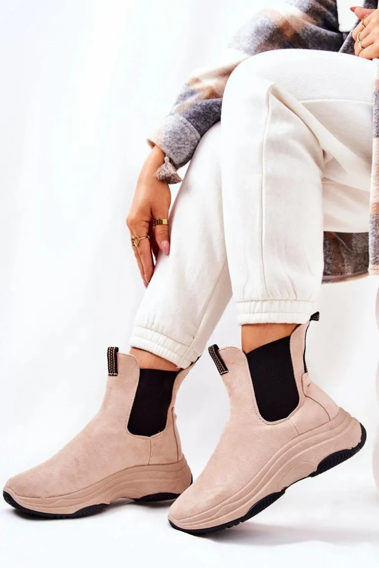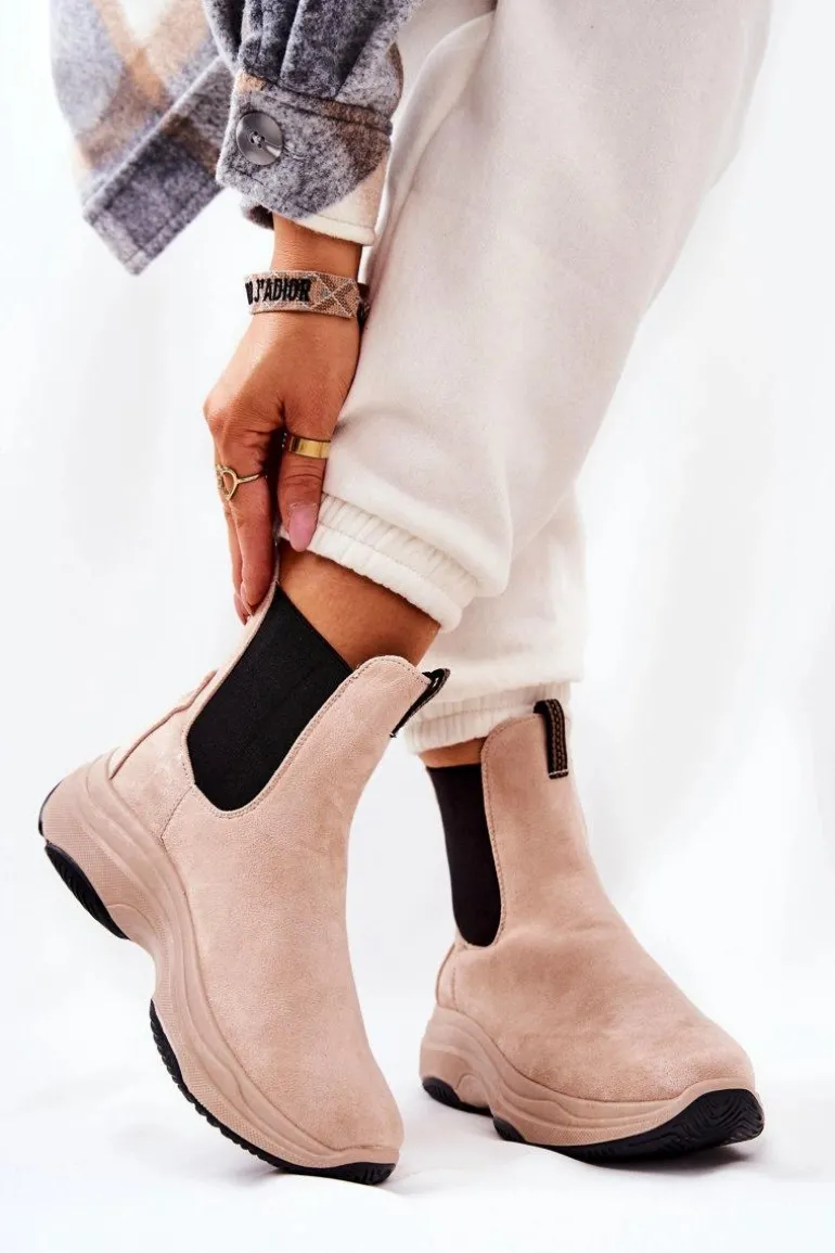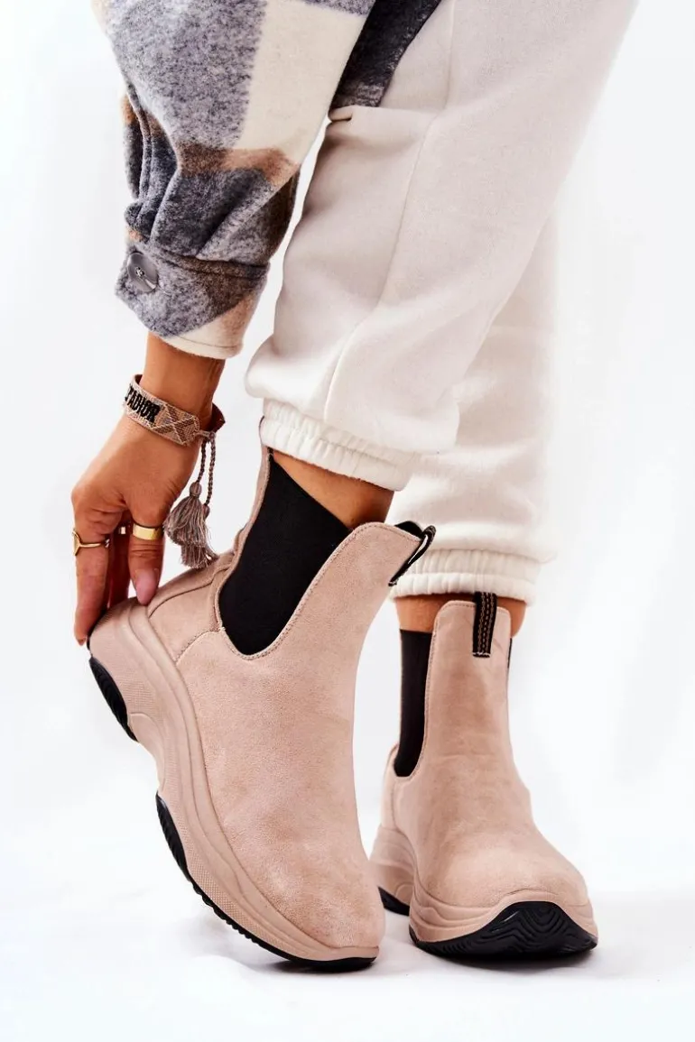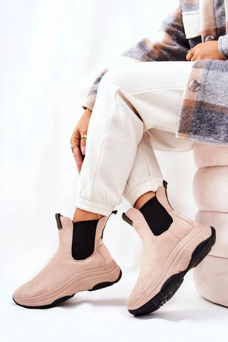 Botki na platformie zostały wykonane z miłego w dotyku eko zamszu. Na cholewce znajdują się ściągacze, które dopasują się do tęgości cholewki. Buty nie są ocieplane. Botki na stabilnej podeszwie zapewnią komfort i wygodę. Będą pasować do wielu jesienno-zimowych stylizacji. Koniecznie sprawdź także pozostałe nasze modele botków! Przy wyborze rozmiaru prosimy sugerować się tabelą rozmiarów.