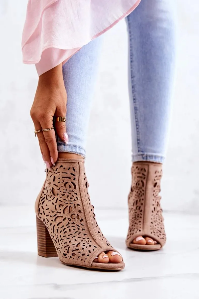 Botki to nieodłączny element kobiecych stylizacji. Wykonane z zamszowej eko skóry. Klasyczne botki z wyciętymi palcami są zapinane na suwak z tyłu cholewki. Obcas w postaci słupka optycznie wysmukli nogę. Ażurowy wzorek sprawi, że buty będą cudownie prezentować się na nodze! Koniecznie sprawdź także pozostałą naszą kolekcję botków! Przy wyborze rozmiaru prosimy sugerować się tabelą rozmiarów.