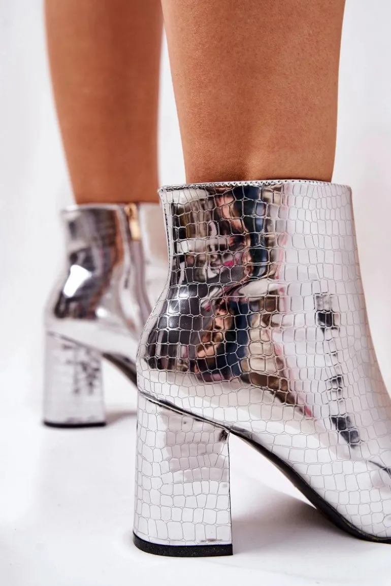 Mamy dla Was coś wyjątkowego! Lustrzane botki z suwakiem na boku, które świetnie wpasują się w nadchodzące trendy. Wykonane z wysokiej jakości skóry ekologicznej z wężowym, lustrzanym efektem. Usztywniany zapiętek. Obcas w postaci szerokiego słupka. Nosek w szpic. Koniecznie sprawdź także pozostałe modele botków z naszej oferty! Przy wyborze rozmiaru prosimy sugerować się tabelą rozmiarów