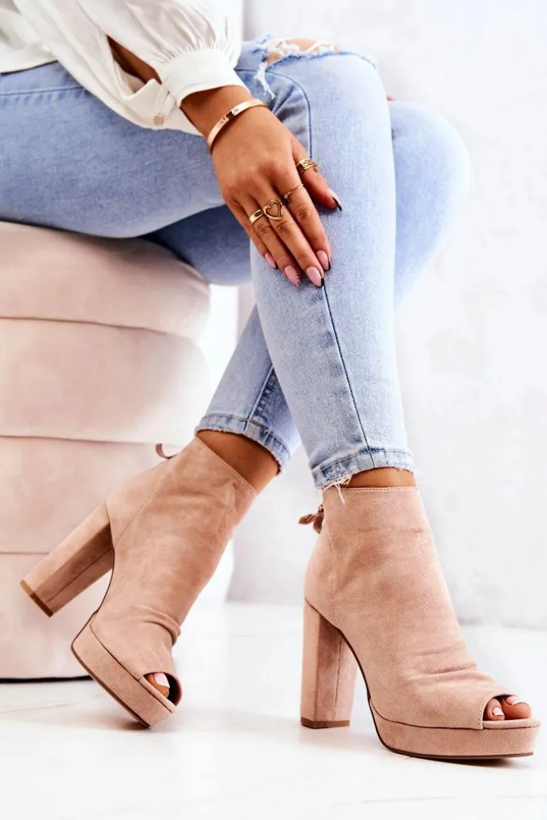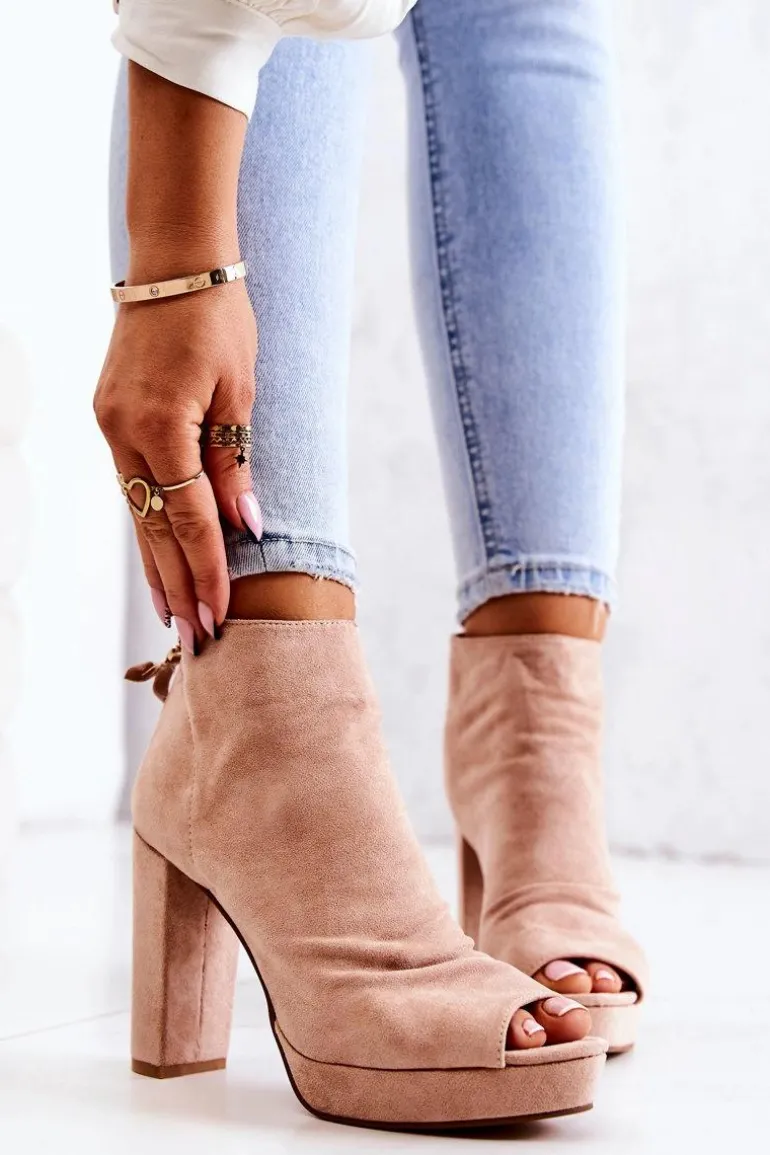 Botki Na Słupku Odkryte Palce Beżowe Adore