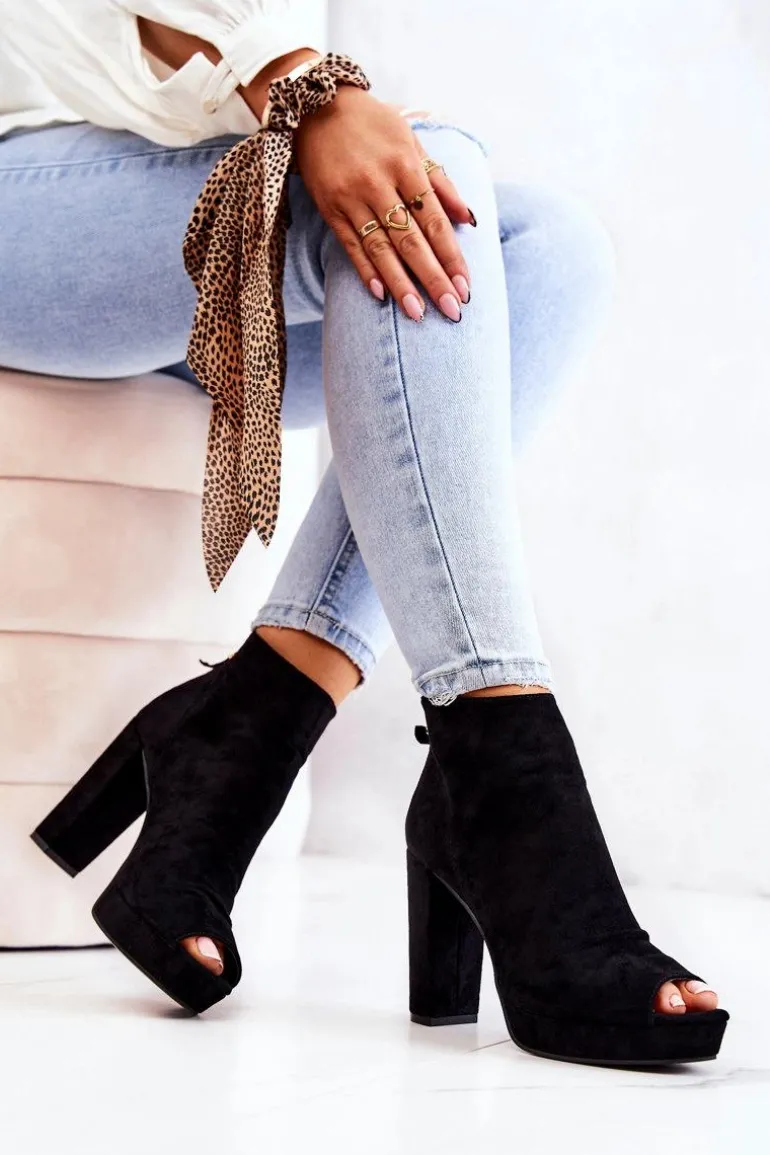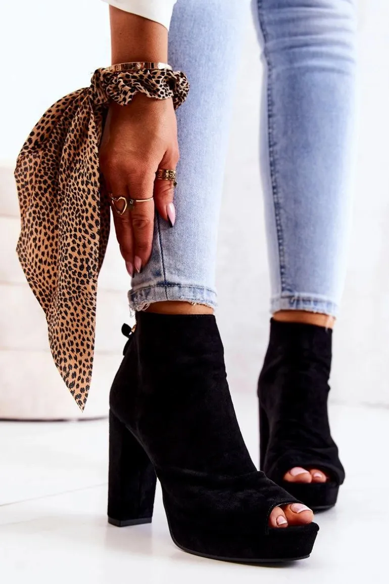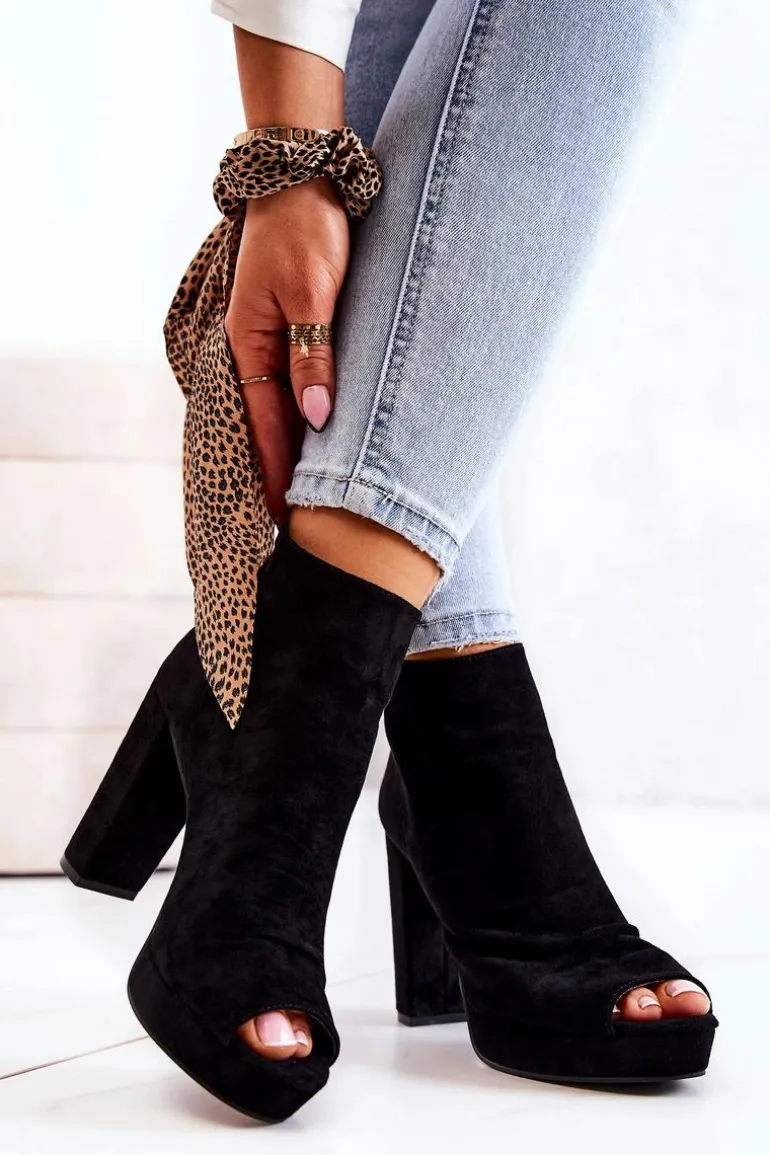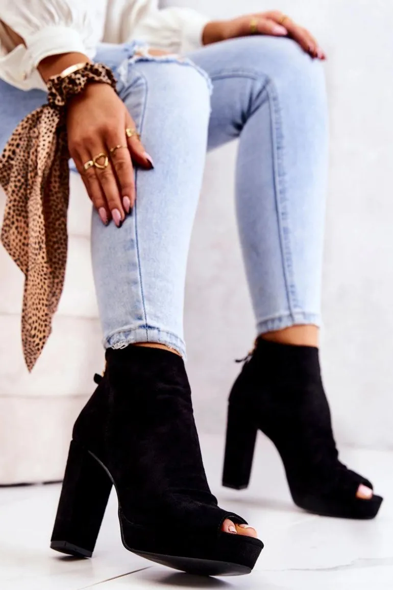 Botki Na Słupku Odkryte Palce Czarne Adore