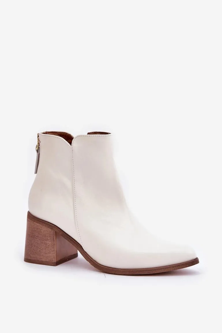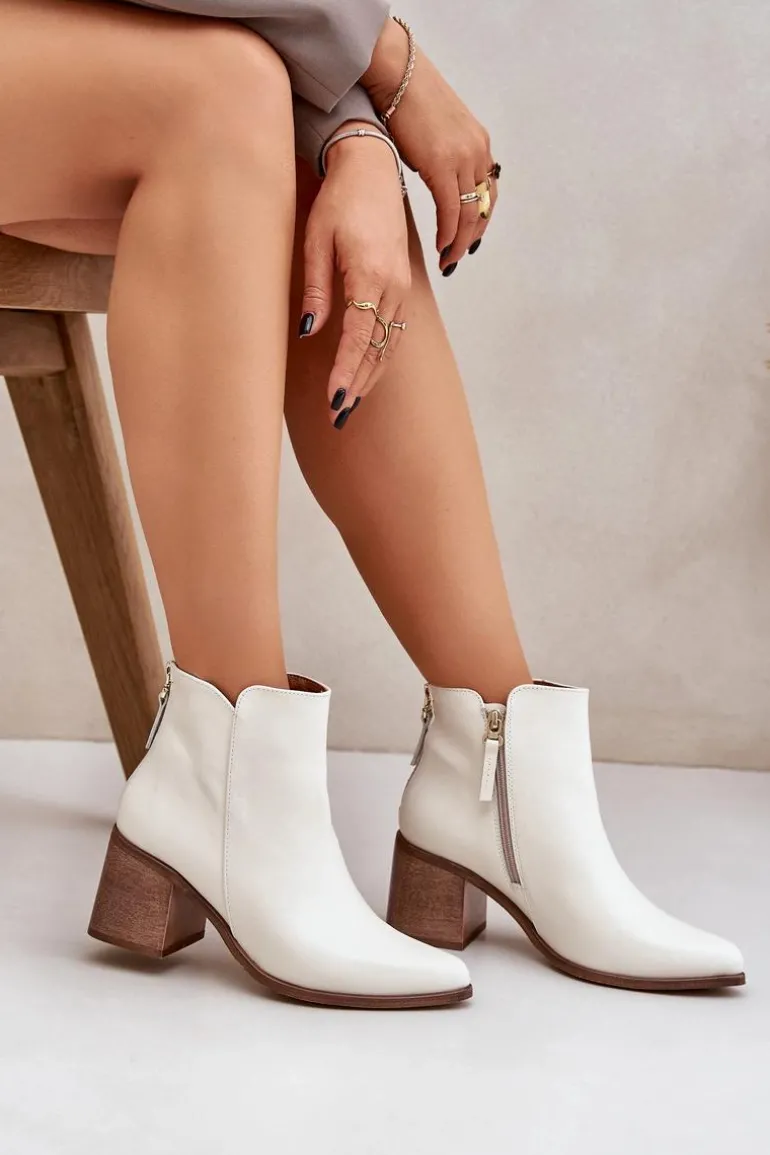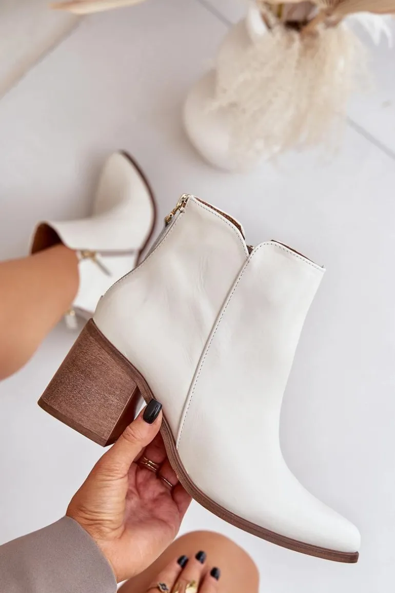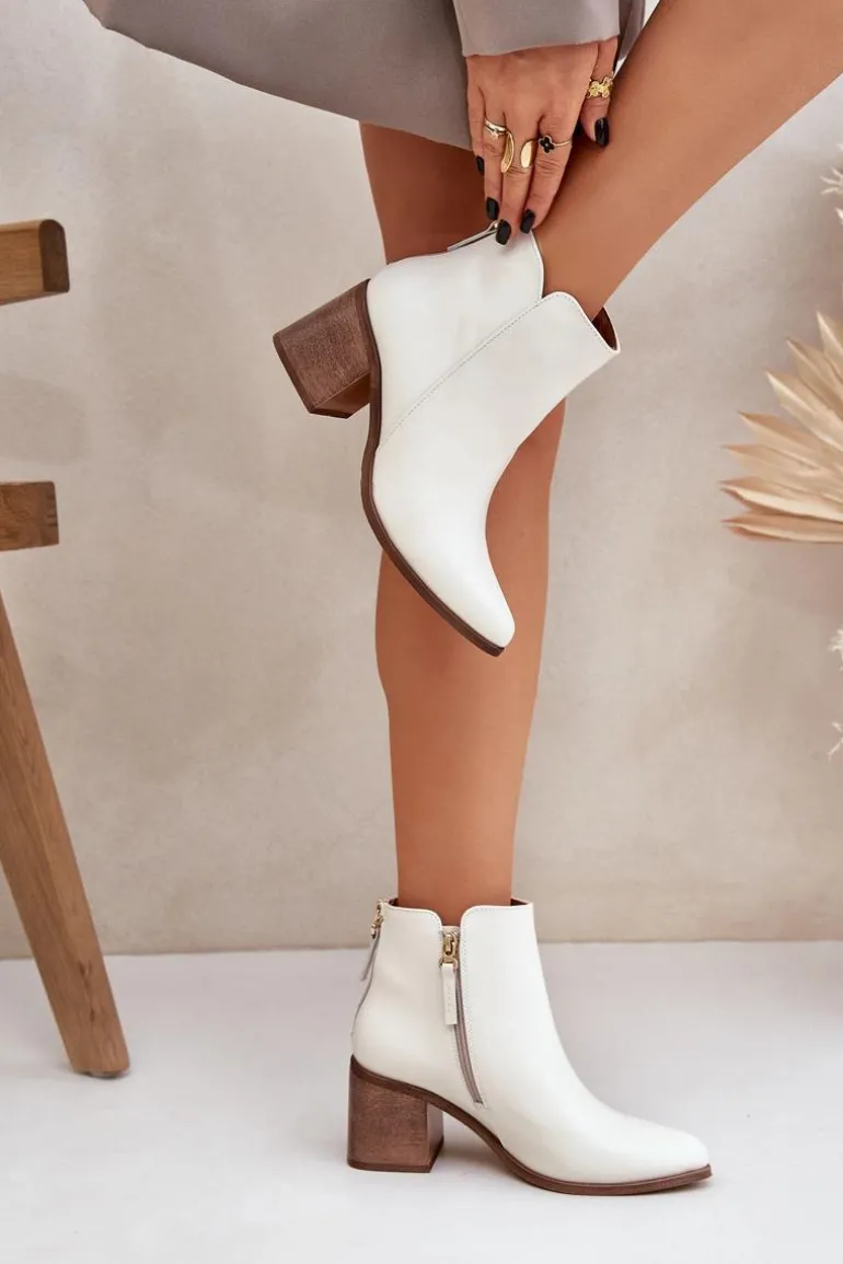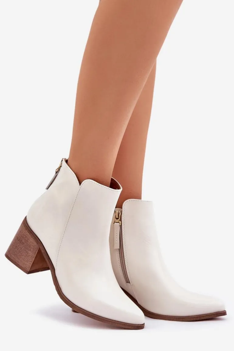Eleganckie botki wykonane z wysokiej jakości skóry naturalnej, które doskonale łączą styl z wygodą. Osadzone na stabilnym obcasie typu słupek, zapewniają komfort noszenia przez cały dzień. Szpiczaste noski nadają im szyku i optycznie wydłużają nogi, podkreślając kobiecy charakter obuwia. Model zapinany na zamek, co ułatwia zakładanie i zdejmowanie. Wnętrze wyposażone w miękką wkładkę ze skóry, która dodatkowo zwiększa wygodę użytkowania. Idealny wybór zarówno do eleganckich stylizacji biurowych, jak i na wieczorne wyjścia. Przy wyborze rozmiaru prosimy sugerować się tabelą rozmiarów.