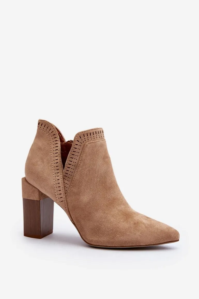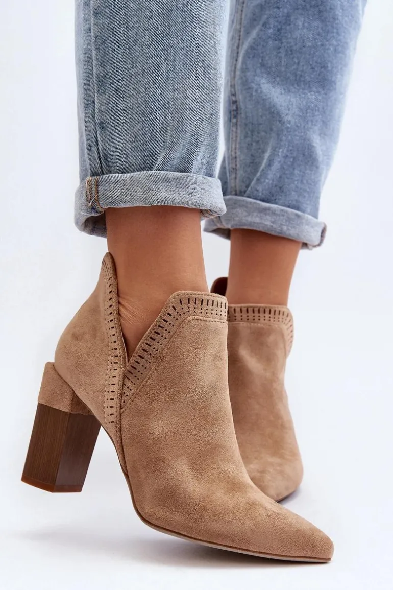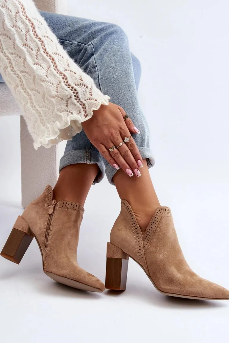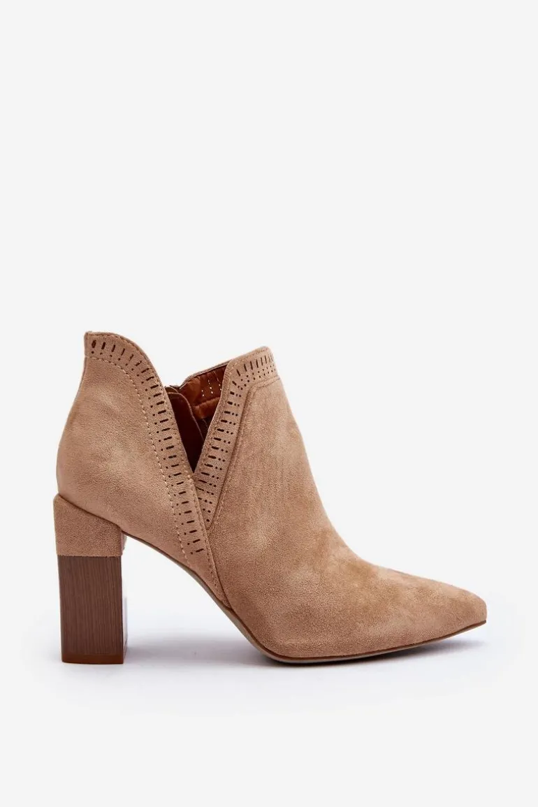 Botki Na Słupku Z Ażurowym Wzorem Beżowe Vailen