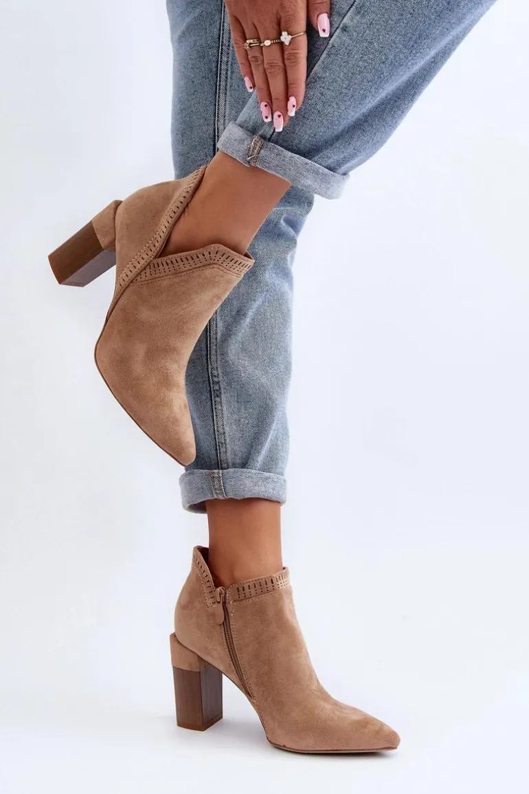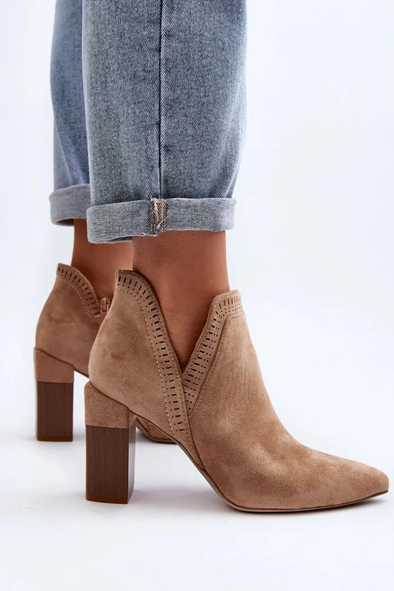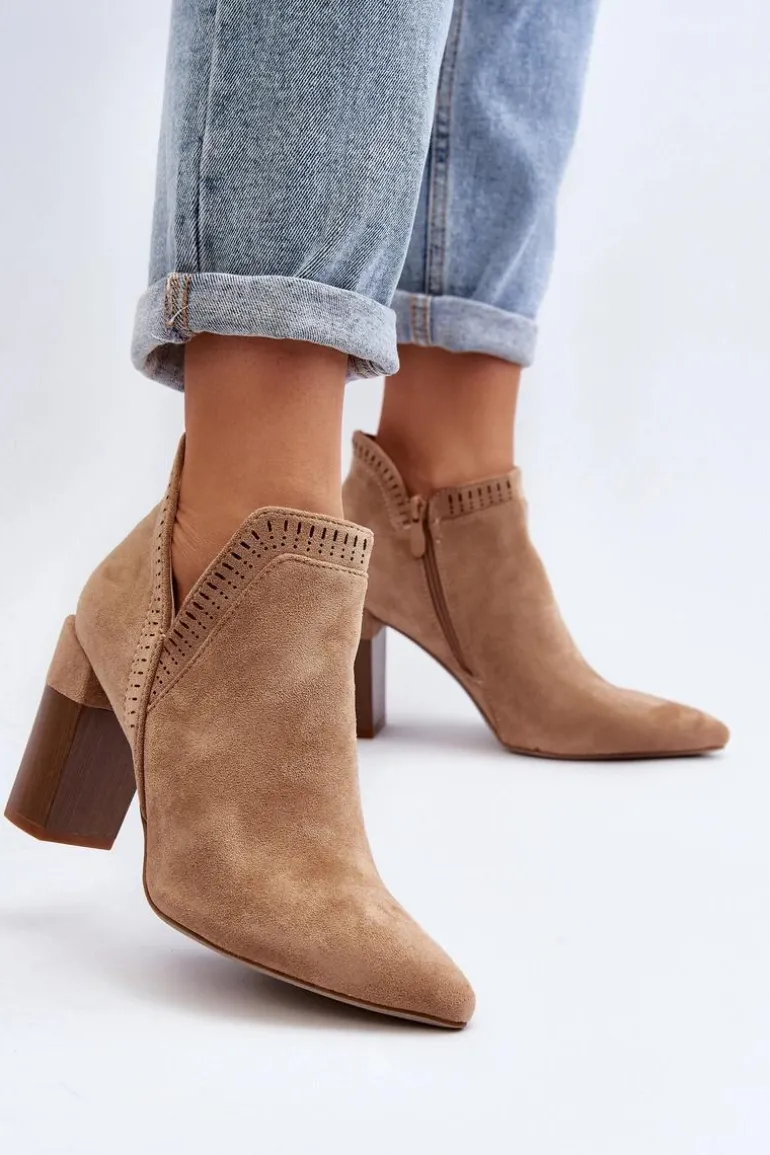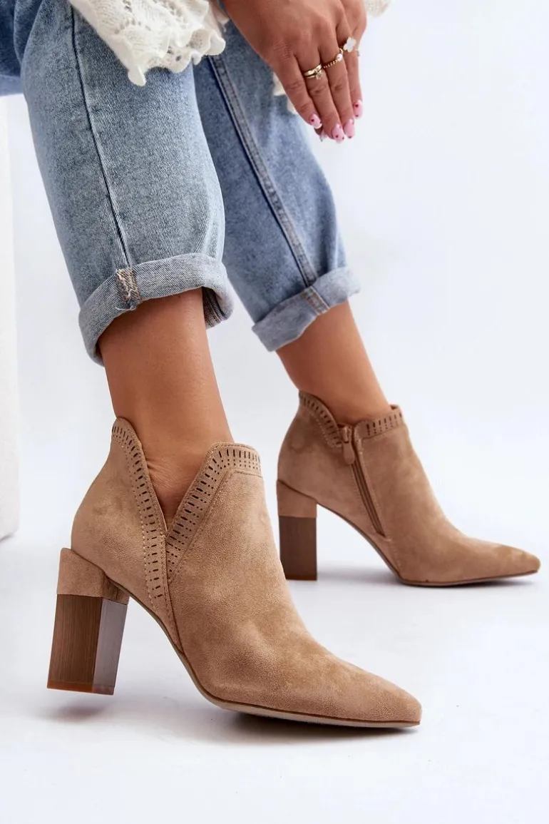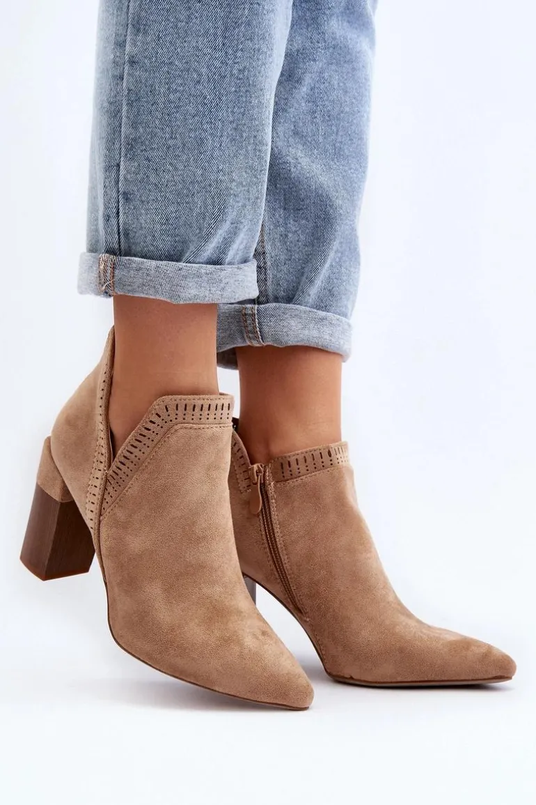 Botki Na Słupku Z Ażurowym Wzorem Beżowe Vailen
