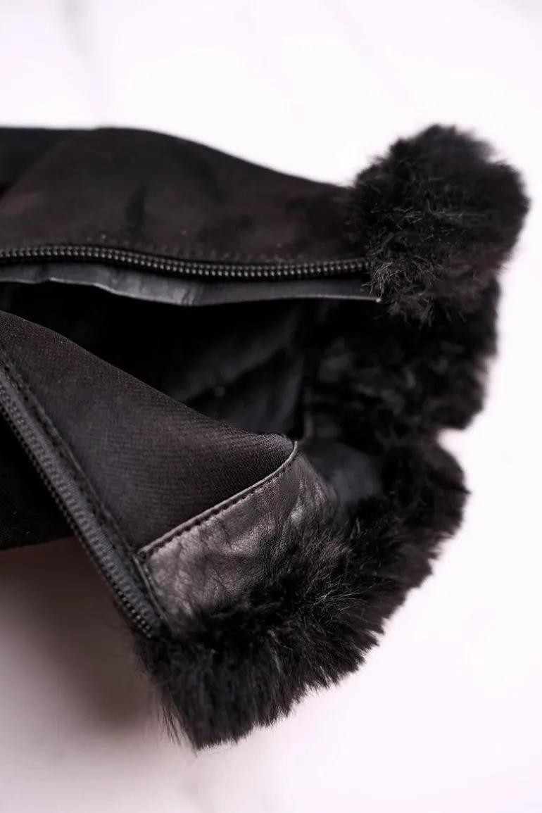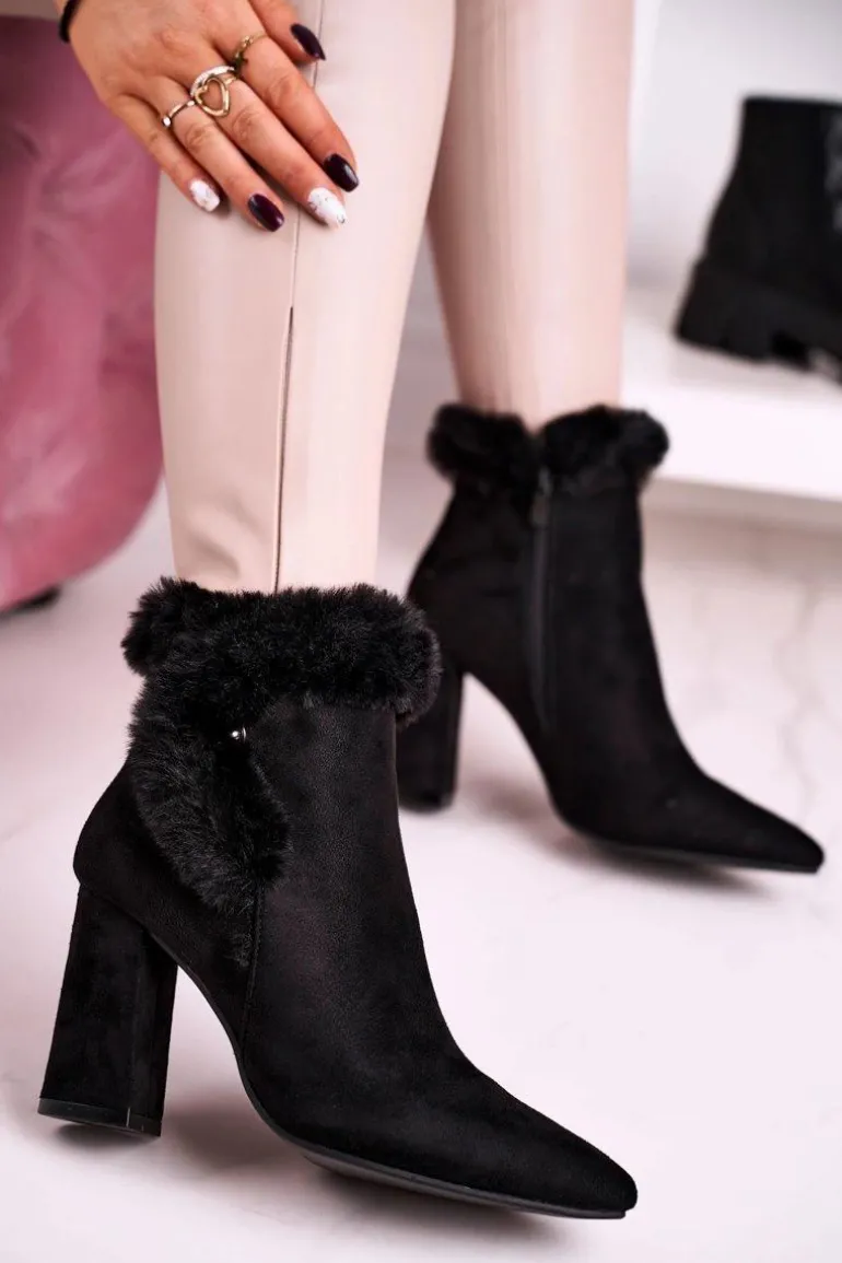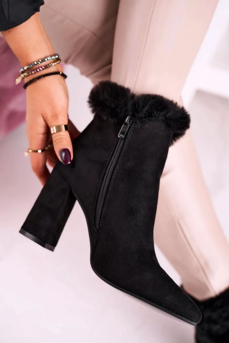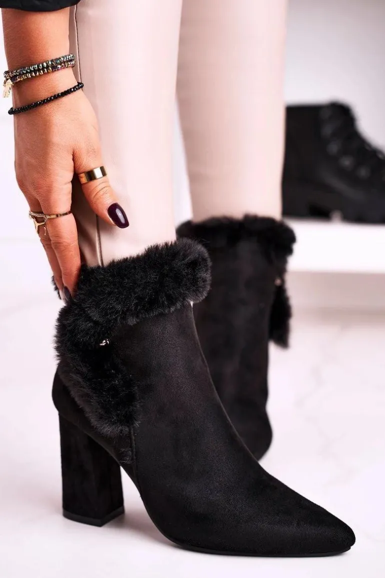 Botki Na Słupku Z Futerkiem Zamszowe Czarne Sophie