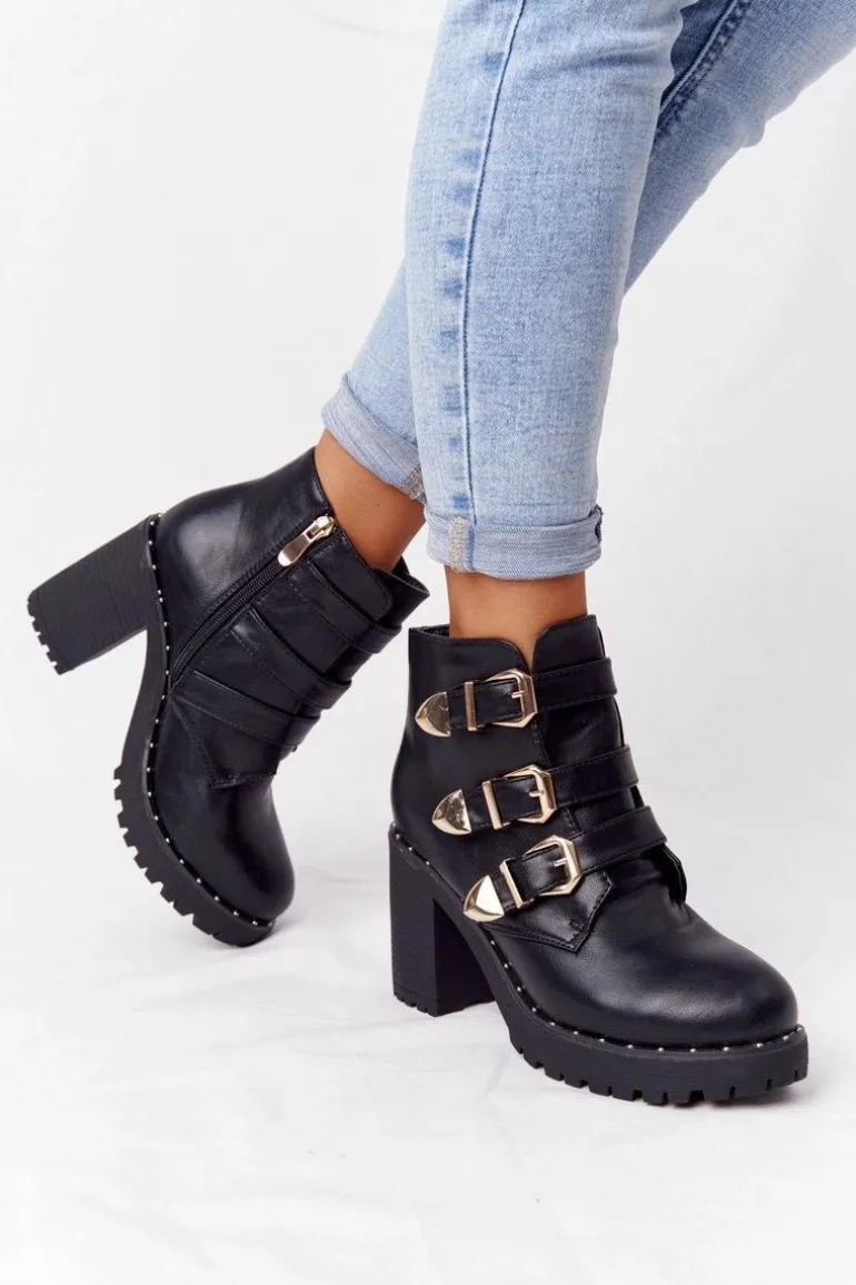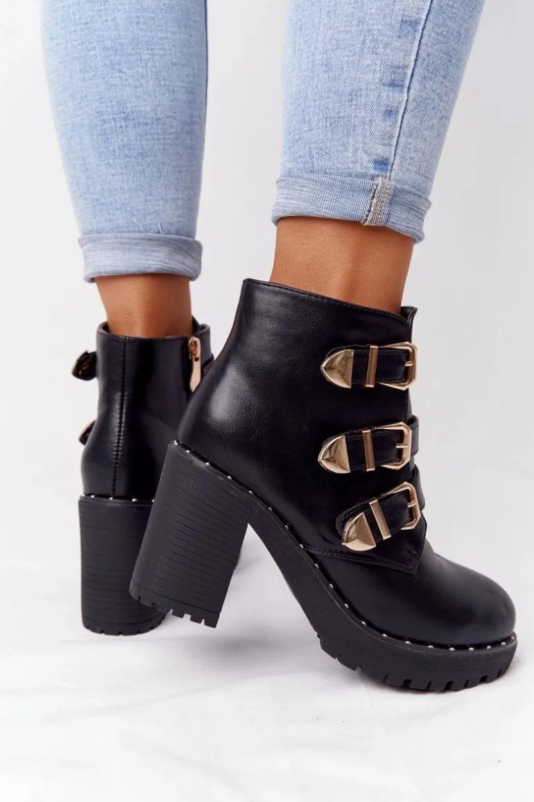Botki Na Słupku Z Klamrami Lu Boo Czarne