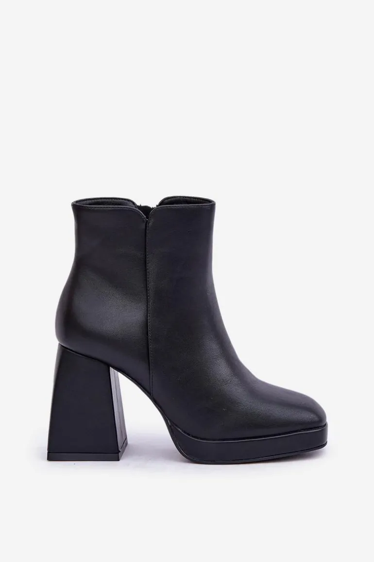 Botki damskie wykonane z eko skóry, osadzone na stabilnym słupkowym obcasie. Zapinane na zamek dla wygody użytkowania. Wnętrze ocieplane, co zapewnia komfort i ciepło w chłodniejsze dni. Uniwersalny model, który świetnie sprawdzi się w codziennych stylizacjach. Przy wyborze rozmiaru prosimy sugerować się tabelą rozmiarów.