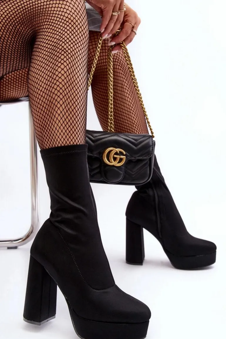 Modne botki damskie zostały wykonane z materiału tekstylnego. Osadzone na obcasie w postaci słupka oraz platformie. Fason z wyższą cholewką. Zapinanie na suwak z boku. Zapiętek jest usztywniony. Miękka eko skórzana wkładka zapewni komfort podczas użytkowania. Model ten będzie świetnie prezentować się zarówno z sukienkami, eleganckimi spodniami, jak i spódniczkami. Przy wyborze rozmiaru prosimy sugerować się tabelą rozmiarów.