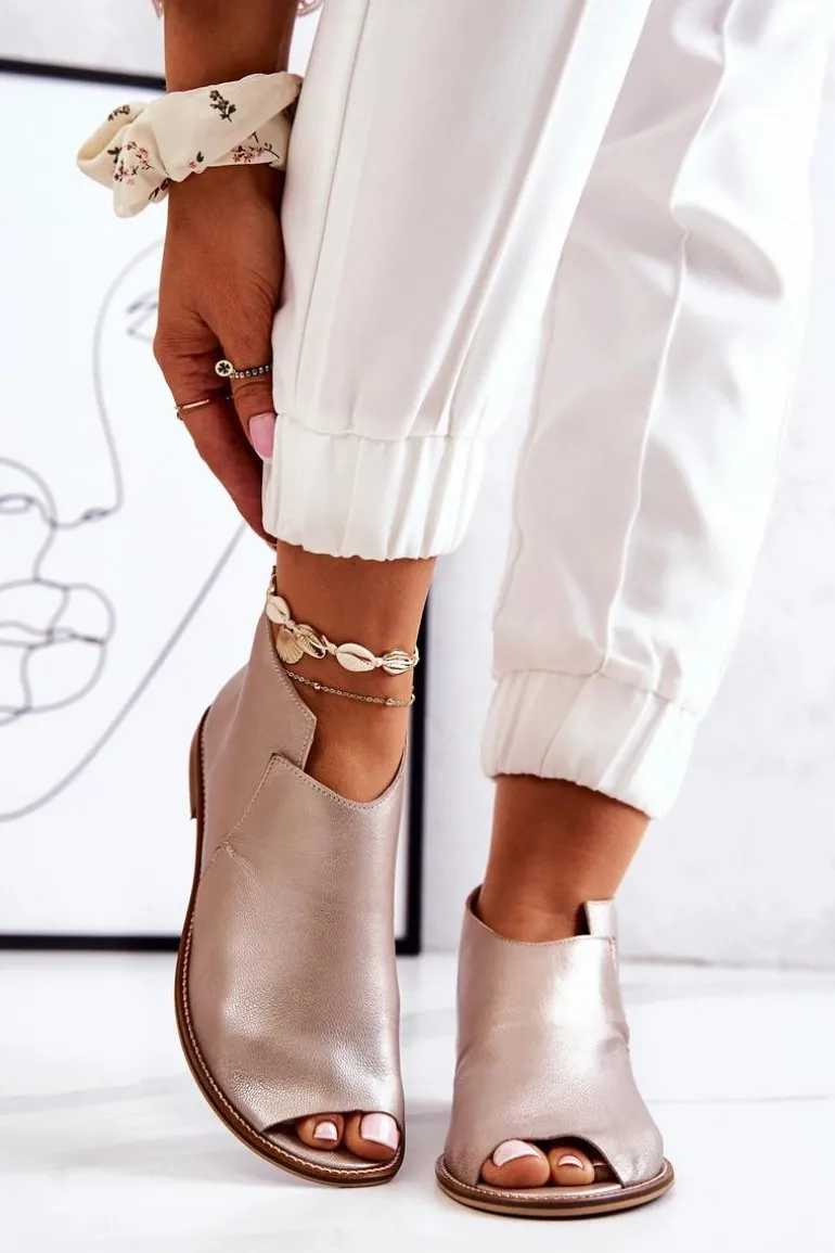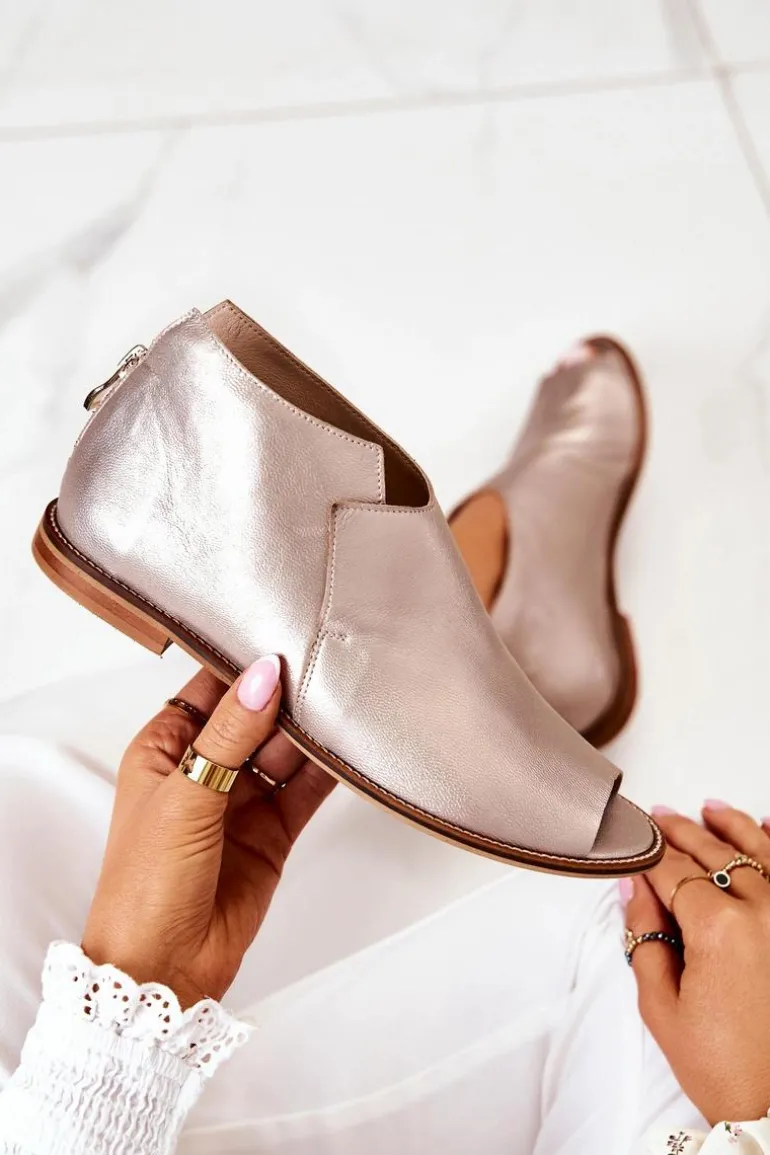 Botki Skórzane Na Obcasie Laura Messi Złote 2324