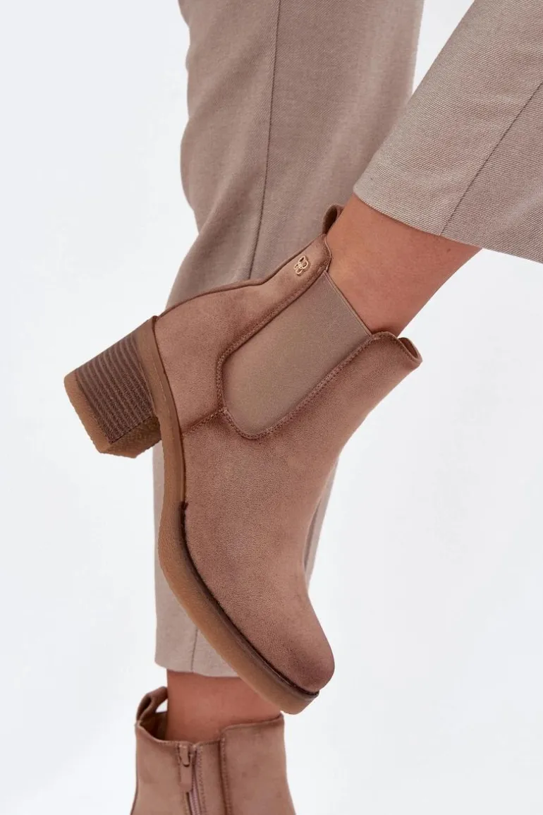 Botki damskie wykonane z eko zamszu. Osadzone na obcasie w formie słupka, który zapewnia stabilność i komfort przez cały dzień. Ocieplane, gwarantują ciepło w chłodniejsze dni, a zamek błyskawiczny ułatwia zakładanie. Z boku cholewki znajduje się subtelny, złoty detal, który dodaje im eleganckiego akcentu. Idealne do codziennych stylizacji, które wymagają zarówno wygody, jak i modnego wyglądu. Przy wyborze rozmiaru prosimy sugerować się tabelą rozmiarów.