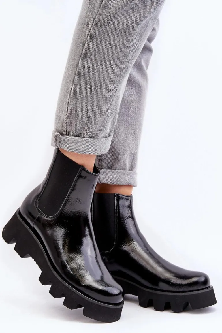 Damskie botki wykonane ze skóry naturalnej. Osadzone na płaskim obcasie i platformie ze żłobieniami. Model wysuwany. Środek ocieplony kocem obuwniczym. Noski zaokrąglone. Usztywniony zapiętek. Świetny model do wielu stylizacji! Musisz je mieć! Przy wyborze rozmiaru prosimy sugerować się tabelą rozmiarów.
