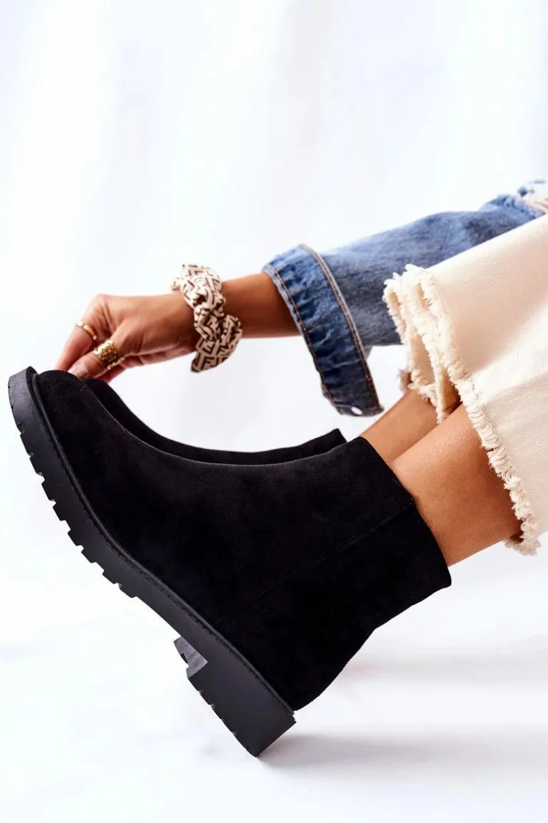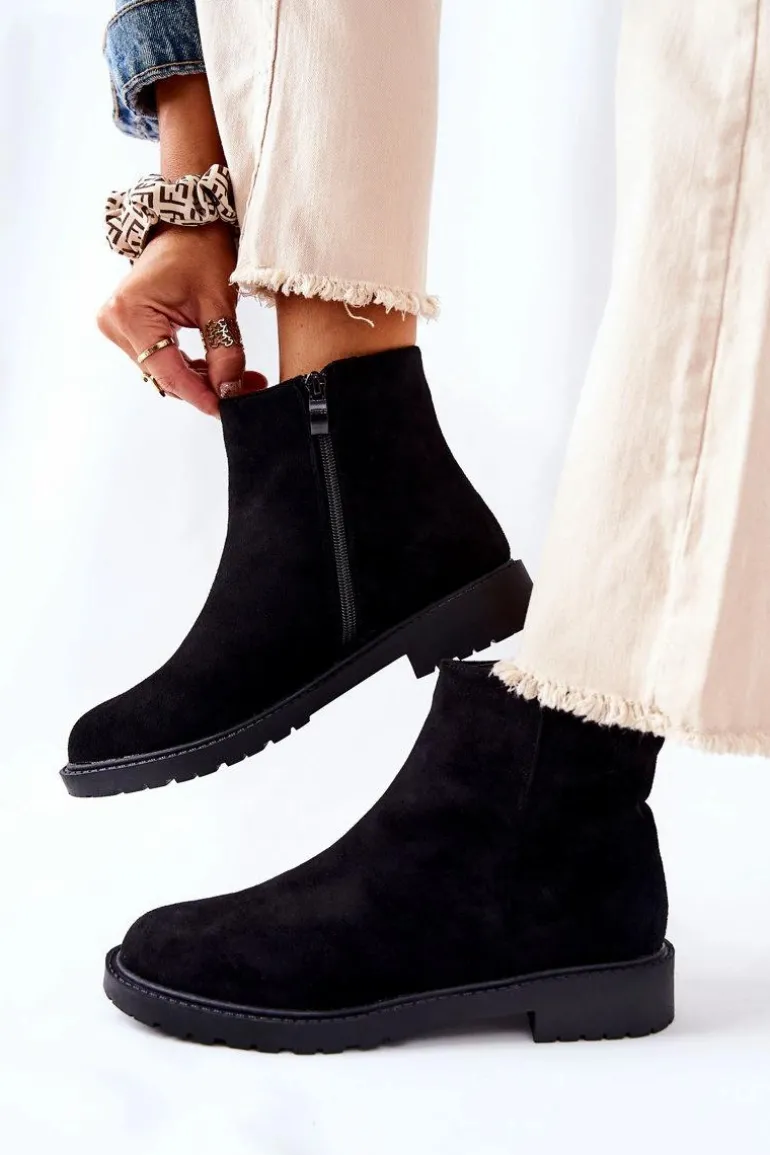 Model botków, który pasuje do każdej stylizacji dzięki swojemu klasycznemu fasonowi. Wykonane z przyjemnego w dotyku eko zamszu. Zapinane na suwak. W środku w całości ocieplane kocem obuwniczym. Klasyczne botki powinny znaleźć się w garderobie każdej kobiety, dlatego nie czekaj! Kup je już dziś! Przy wyborze rozmiaru prosimy sugerować się tabelą rozmiarów.