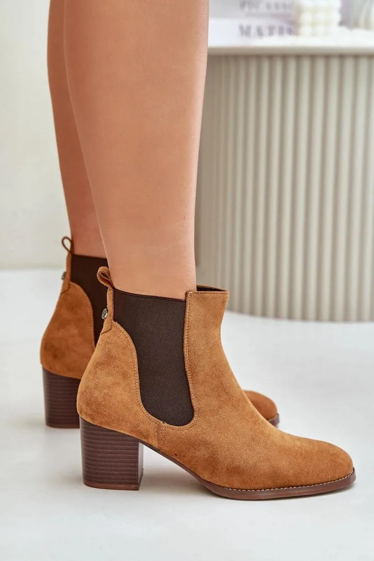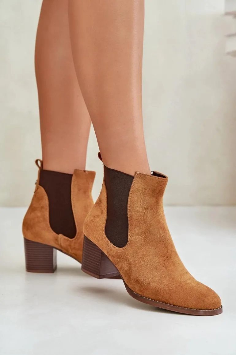 Botki wykonane z eko zamszu to elegancka opcja na każdą okazję. Osadzone na stabilnym obcasie typu słupek, z zaokrąglonymi noskami, łączą w sobie styl i wygodę. Na cholewce elastyczne wstawki. Wnętrze delikatnie ocieplane kocem obuwniczym zapewnia komfort w chłodniejsze dni. Idealne do codziennych stylizacji! Przy wyborze rozmiaru prosimy sugerować się tabelą rozmiarów.