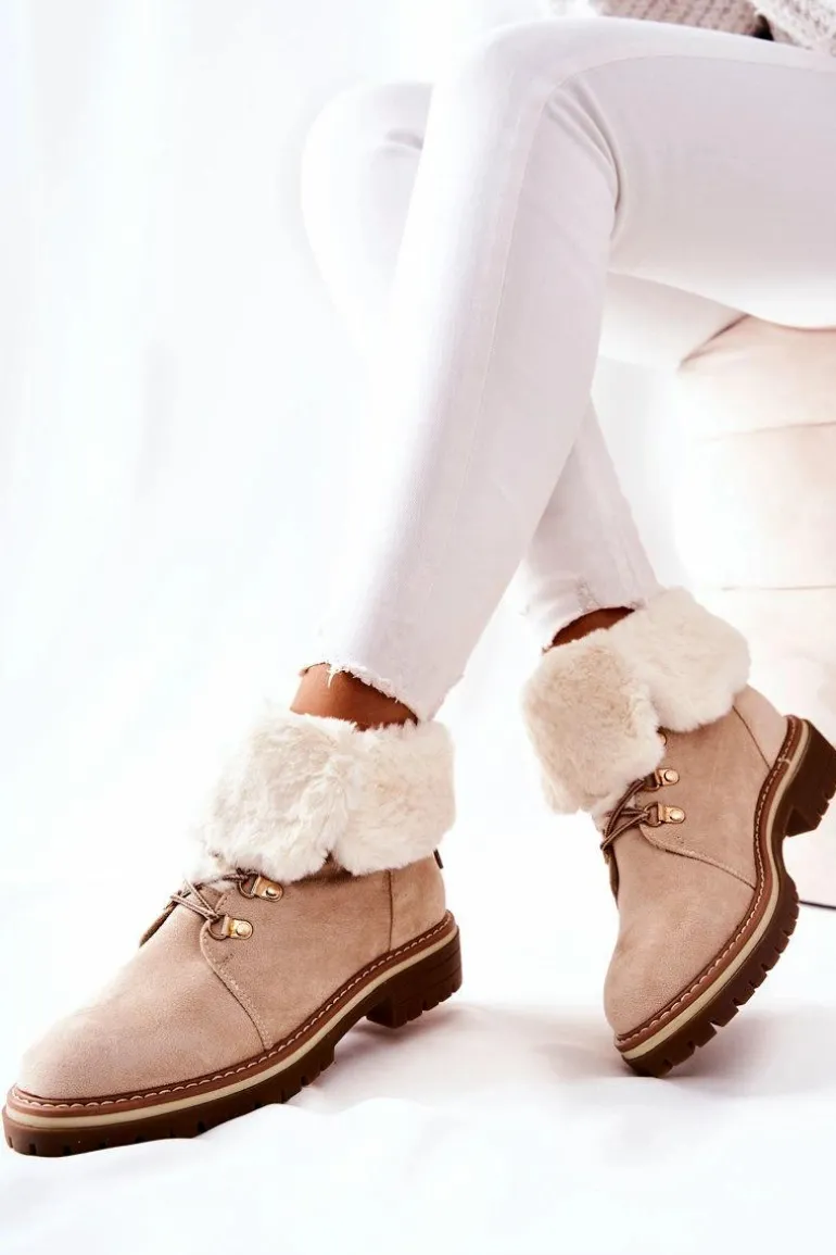 Wewnątrz botków znajduje się ciepłe i miłe w dotyku futerko. Buty posiadają wiązanie oraz luźną cholewkę. Modny fason sprawdzi się w wielu stylizacjach. Idealne na chłodne dni. Koniecznie sprawdź także pozostałe modele ocieplanych botków!Przy wyborze rozmiaru prosimy sugerować się tabelą rozmiarów.