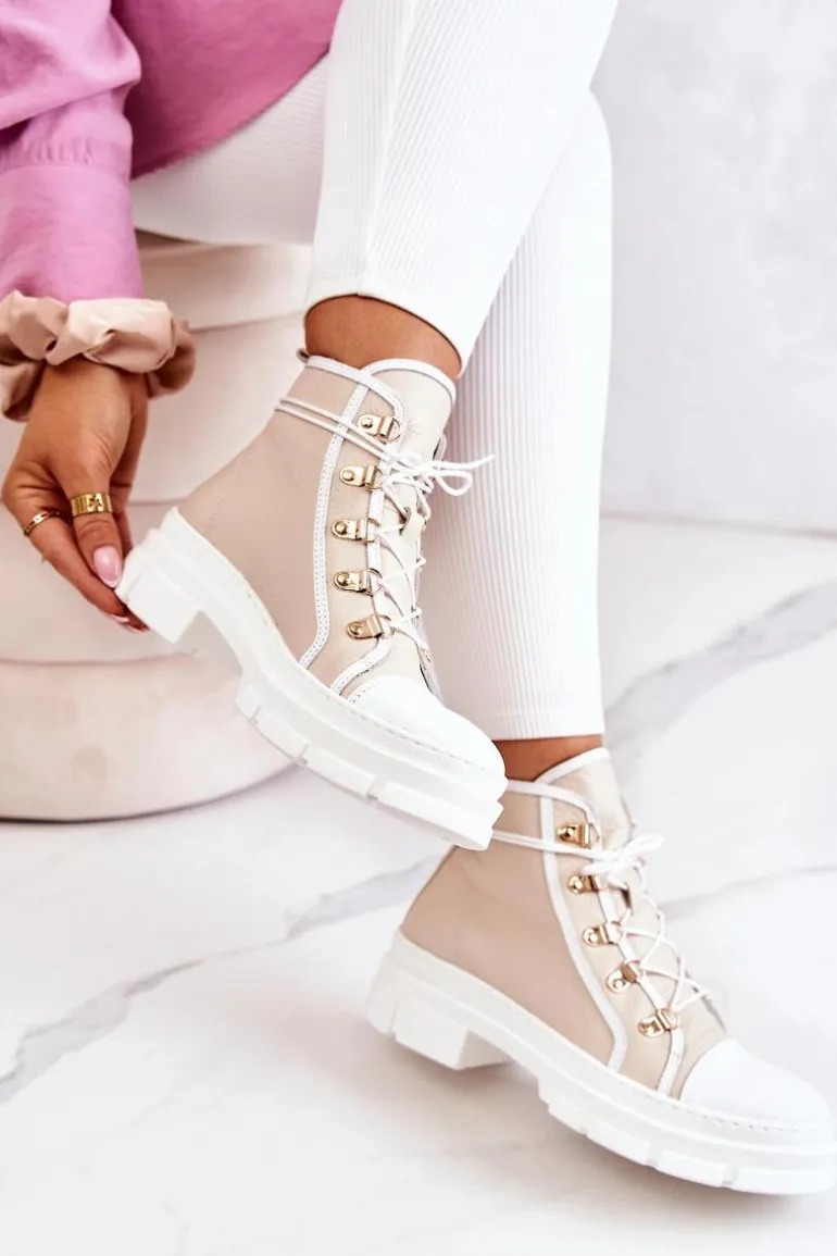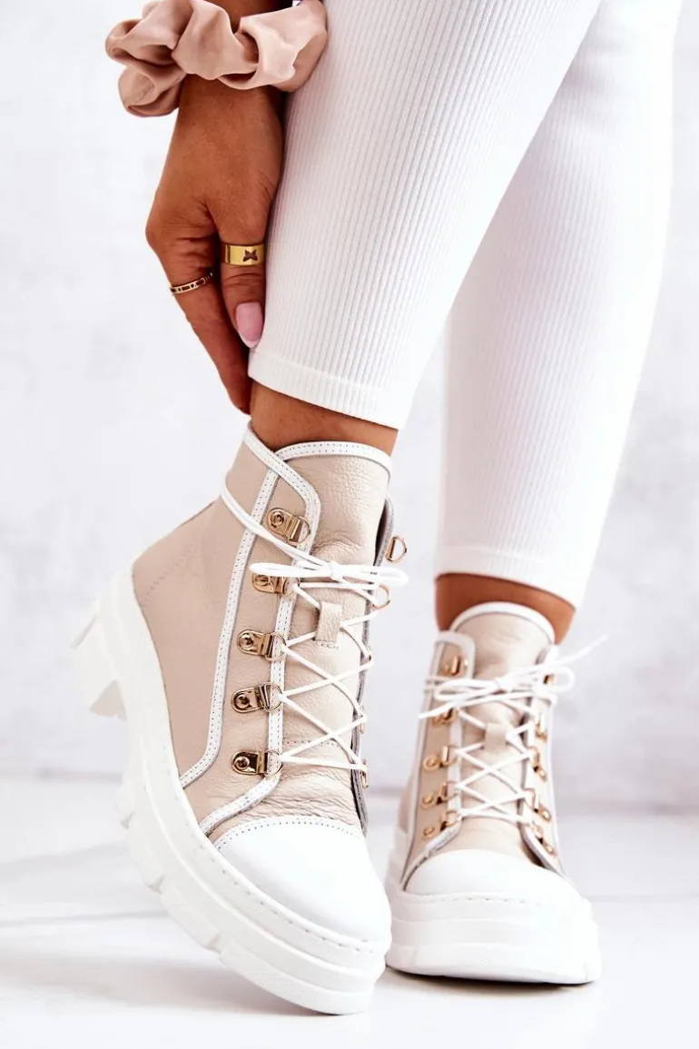 Botki zostały wykonane z naturalnej skóry. Posiadają klasyczne wiązanie umożliwiające dopasowanie buta do tęgości nogi. Grubsza podeszwa świetnie odizoluje od zimnego podłoża. Wkładka wykonana z naturalnej skóry. Pięknie prezentują się na nodze! Koniecznie musisz je mieć! Przy wyborze rozmiaru prosimy sugerować się tabelą rozmiarów.