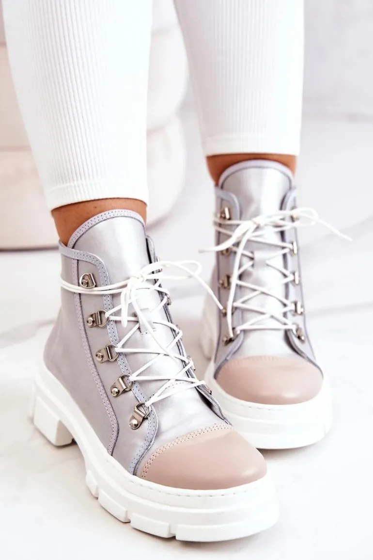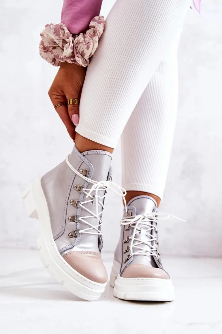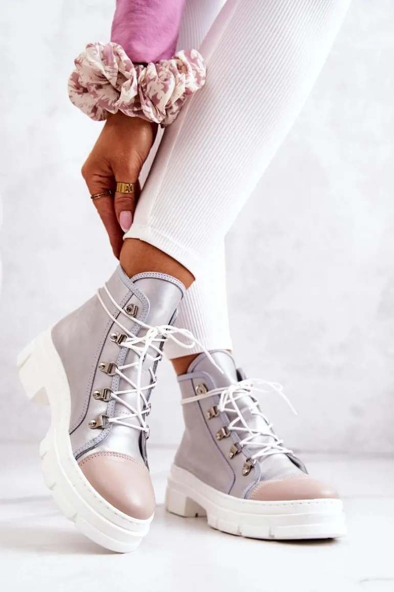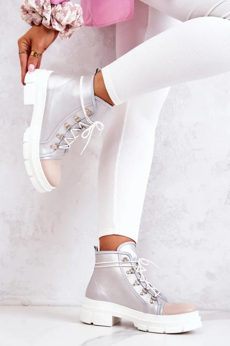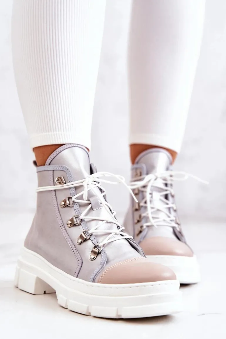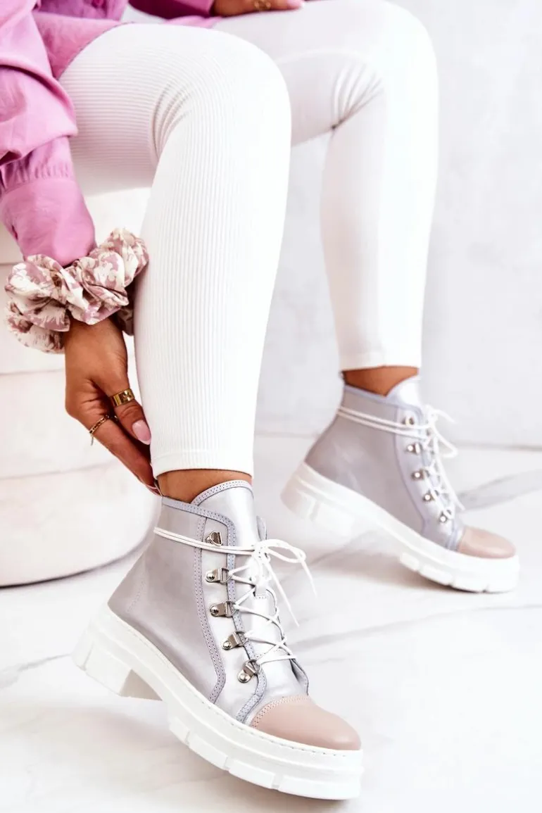 Botki zostały wykonane z naturalnej skóry. Posiadają klasyczne wiązanie umożliwiające dopasowanie buta do tęgości nogi. Grubsza podeszwa świetnie odizoluje od zimnego podłoża. Wkładka wykonana z naturalnej skóry. Pięknie prezentują się na nodze! Koniecznie musisz je mieć! Przy wyborze rozmiaru prosimy sugerować się tabelą rozmiarów.