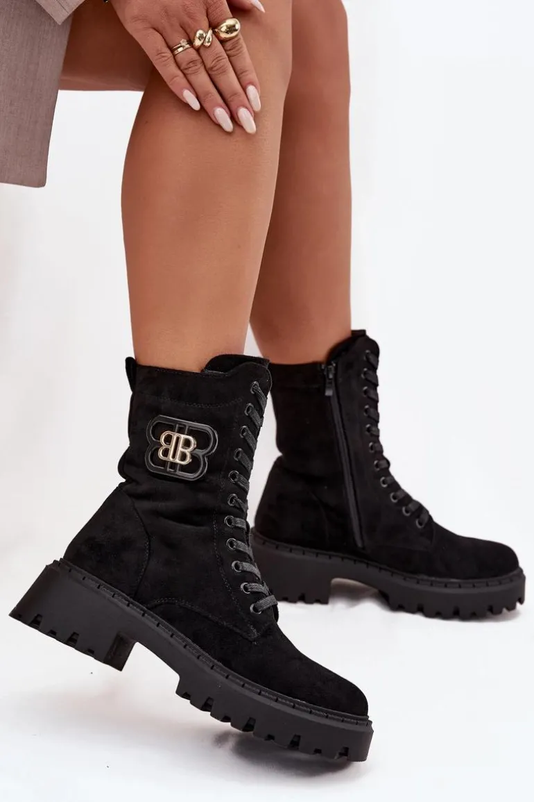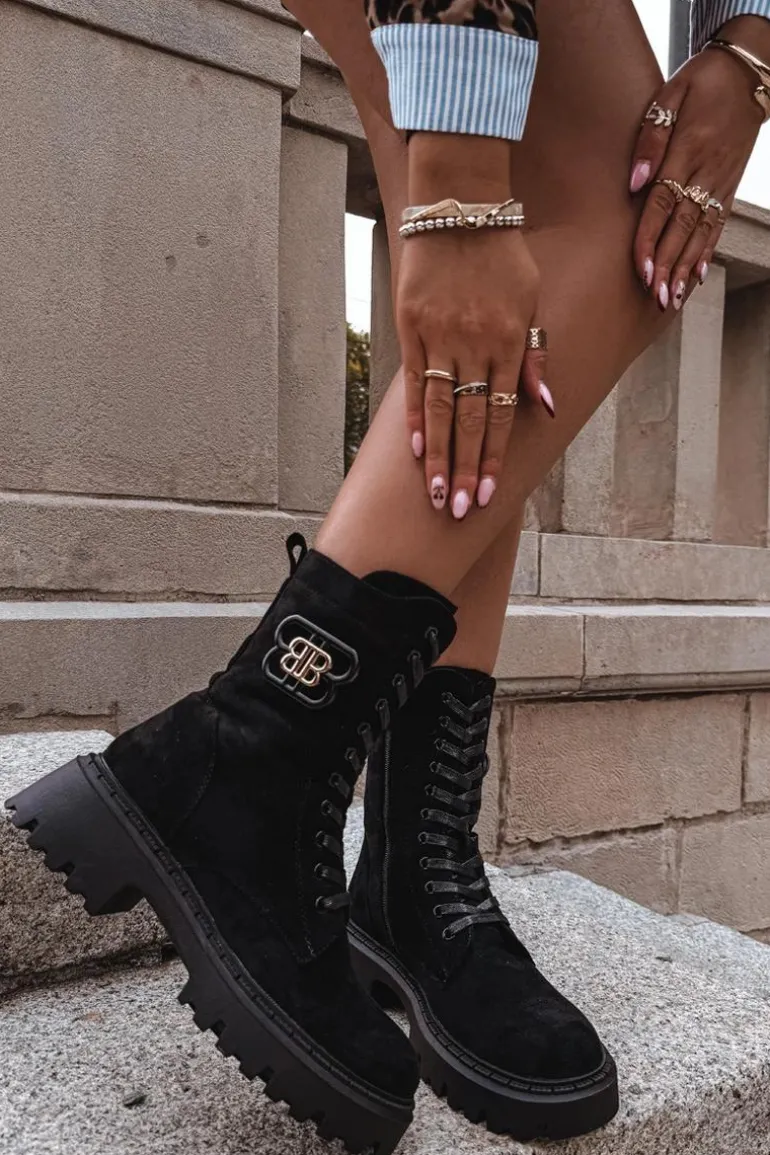Botki workery w miejskim wydaniu to idealne połączenie stylu i wygody. Model zapinany na zamek z dodatkowym sznurowaniem pozwala na idealne dopasowanie do stopy. Ocieplane wnętrze z miękkiego koca obuwniczego gwarantuje komfort w chłodne dni, a solidna podeszwa z obcasem i platformą zapewnia stabilność. Subtelny detal na cholewce dodaje całości delikatnego, modnego akcentu. Doskonale komponują się z codziennymi stylizacjami. Przy wyborze rozmiaru prosimy sugerować się tabelą rozmiarów.