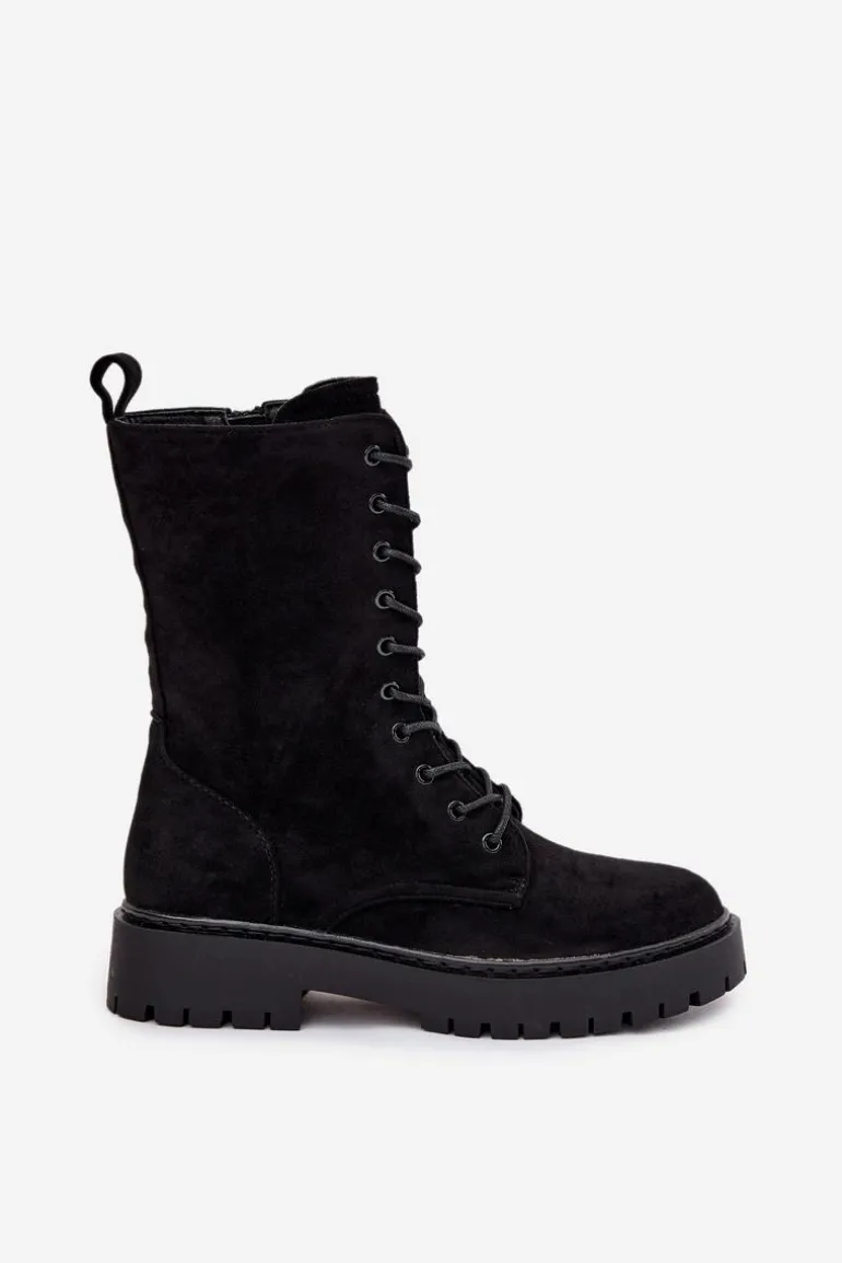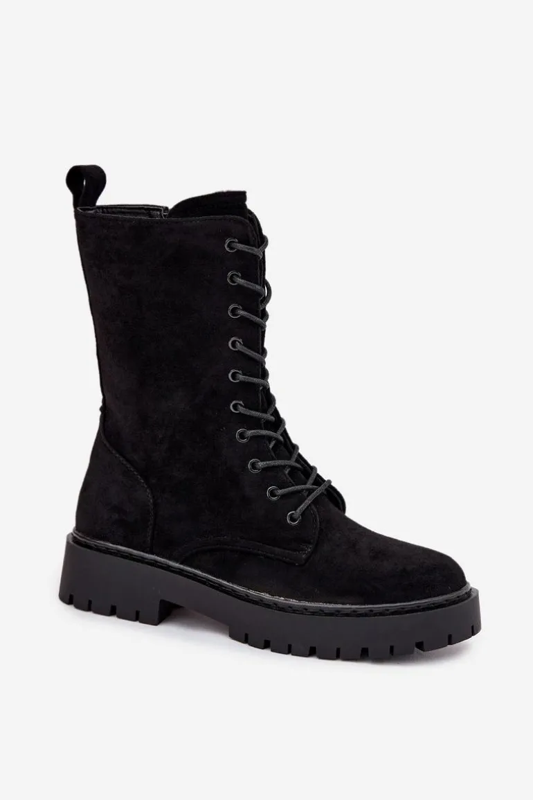 Klasyczne botki damskie typu workery wykonane z eko zamszu. Model osadzony na platformie z płaskim obcasem zapewnia stabilny krok, a ocieplenie gwarantuje komfort w chłodniejsze dni. Sznurowanie w połączeniu z zamkiem umożliwia łatwe zakładanie i idealne dopasowanie do stopy, co czyni je świetnym wyborem do codziennych, casualowych stylizacji. Przy wyborze rozmiaru prosimy sugerować się tabelą rozmiarów.